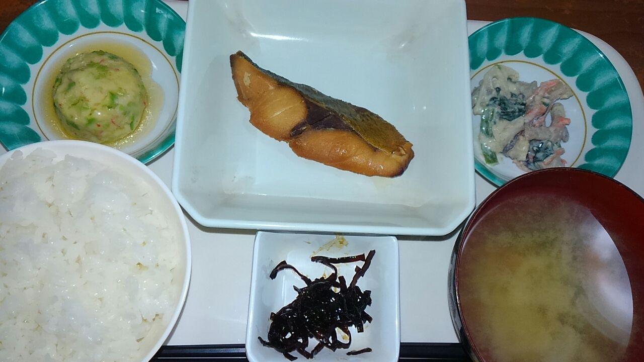 本日のメニュー 2017.03.04 11:05 本日のメニューです(3月4日) 昼食 主食 ごはん 味噌汁 主菜 アジ照り焼き 副菜 枝豆とカニかま真丈 五目白和え 添え物 しそこんぶ夕食主食 ごはん 味噌汁主菜 鶏肉と枝豆の醤油炒め 里芋の煮っころがし コールスロー添え物 刻み野沢菜漬け