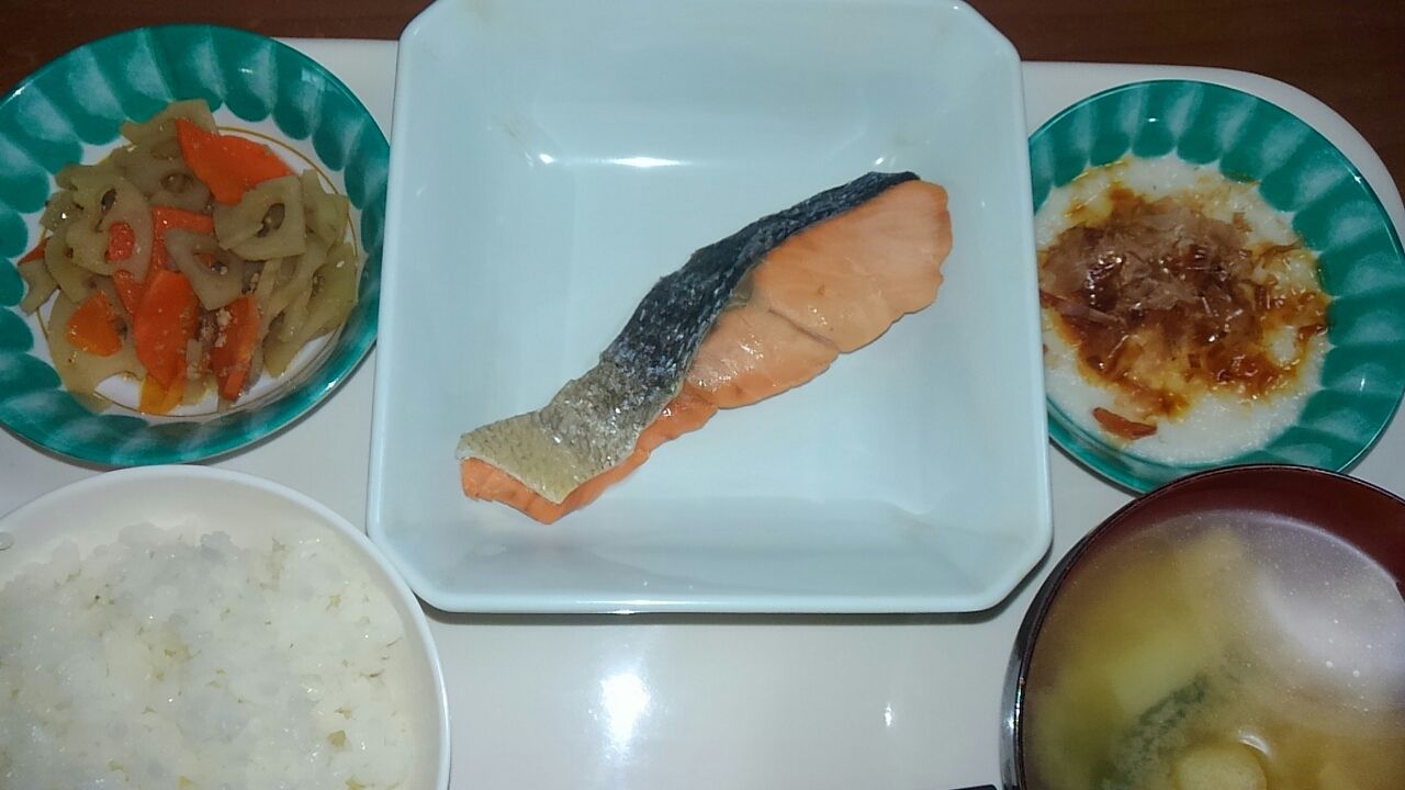 本日のメニュー 2017.03.10 11:07 本日のメニューです(3月10日) 昼食 主食 ごはん 味噌汁 主菜 秋鮭塩焼き 副菜 はすのきんぴら 添え物 とろろ夕食主食 ごはん 味噌汁主菜 豚肉と大根の味噌煮副菜 しゅうまい 小松菜のしらす和え