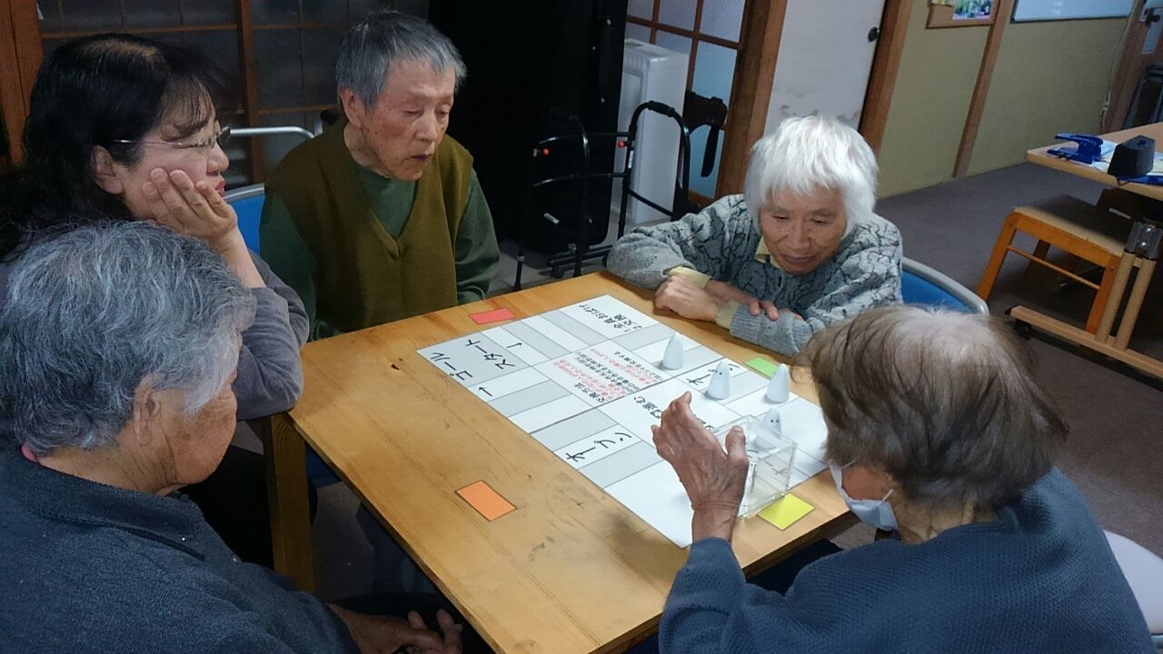 オバケだぞー 2017.03.10 11:09 記憶のレクレーションで、オバケだぞーです。最初の時は、オバケがかぶってもわかるのですが、だんだん進めていく間に交換になったりでちょっと勘違いしてしまいます。それでも今回は、皆さん1回は、1位をとることが出来ました。