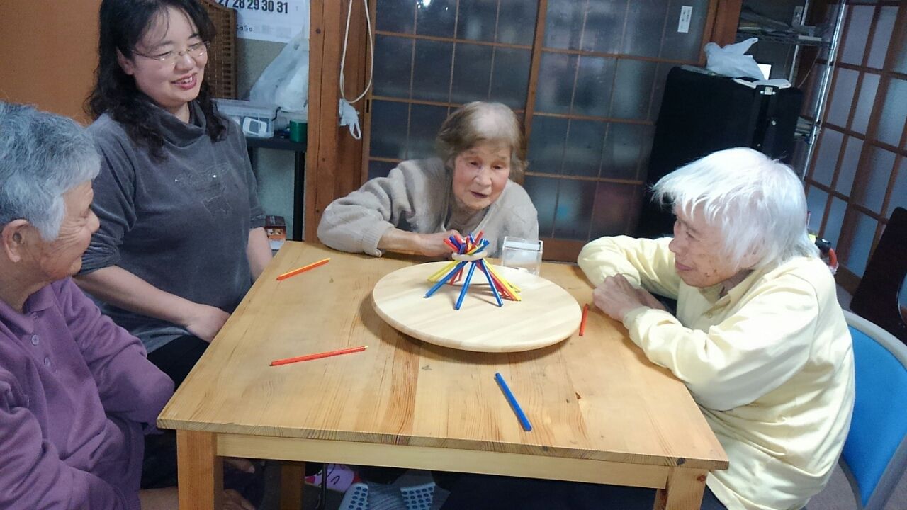 お手玉積み。ステイッキー 2017.03.20 07:01 バランスのレクレーションで、お手玉積みです。最初の時、お手玉が2個のらないうちに積もうとして失格になっていましたが3回くらいからちゃんと積みあげられる様になりました。 ステイッキーをやりました。皆さん慎重にぬいていました。
