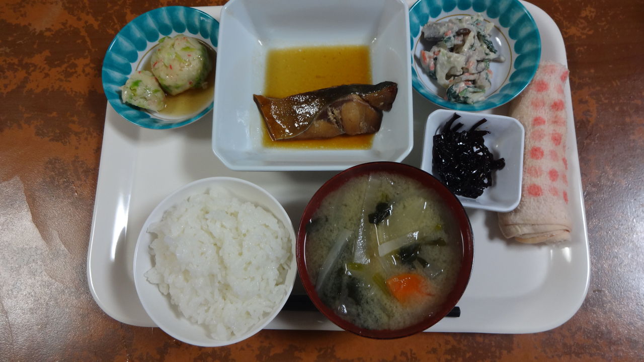 本日のメニュー 2017.04.04 11:10 本日のメニューです(4月4日) 昼食 主食 ごはん 味噌汁 主菜 鶏肉のカシューナッツ炒め 副菜 里芋の煮っころがし キャベツとハムのソテー 添え物 刻み野沢菜漬け夕食 主食 ごはん 味噌汁主菜 アジ照り焼き副菜 枝豆とかにかまの真丈 五目白和え添え物 しそ昆布