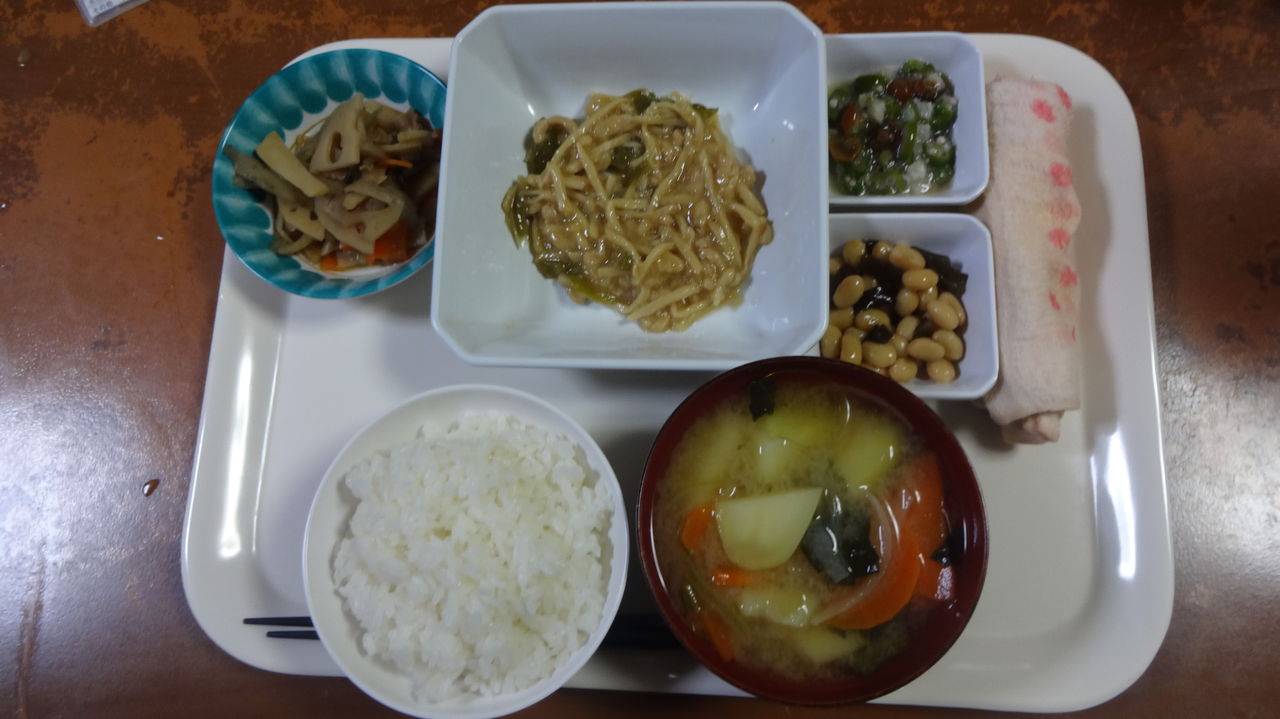 本日のメニュー 2017.04.08 11:45 本日のメニューです(4月8日) 昼食 主食 ごはん 味噌汁 主菜 かに玉風フィッシュバーグ 副菜 ブロッコリーの彩りあん ミートソースペンネ 添え物 きゃらぶき夕食 主食 ごはん 味噌汁主菜 チンジャオロース副菜 吹き寄せ煮 なめこと山芋のオクラ和え添え物 昆布豆