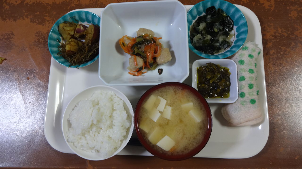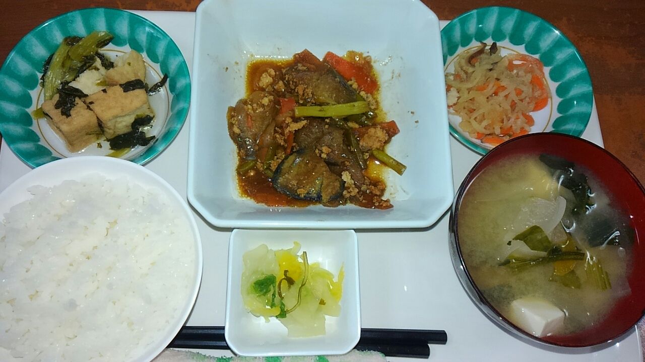 本日のメニュー 2017.04.12 11:10 本日のメニューです(4月12日) 昼食 主食 ごはん 味噌汁 主菜 茄子の甜麺醤炒め 副菜 厚揚げと青菜の煮物 切り干し大根と蒸し鶏の炒め 添え物 白菜昆布漬け夕食 主食 ごはん 味噌汁主菜 肉団子と野菜の薄くず餡副菜 さつま芋と切り昆布の煮物 若芽と玉ねぎのナムル添え物 高菜漬け