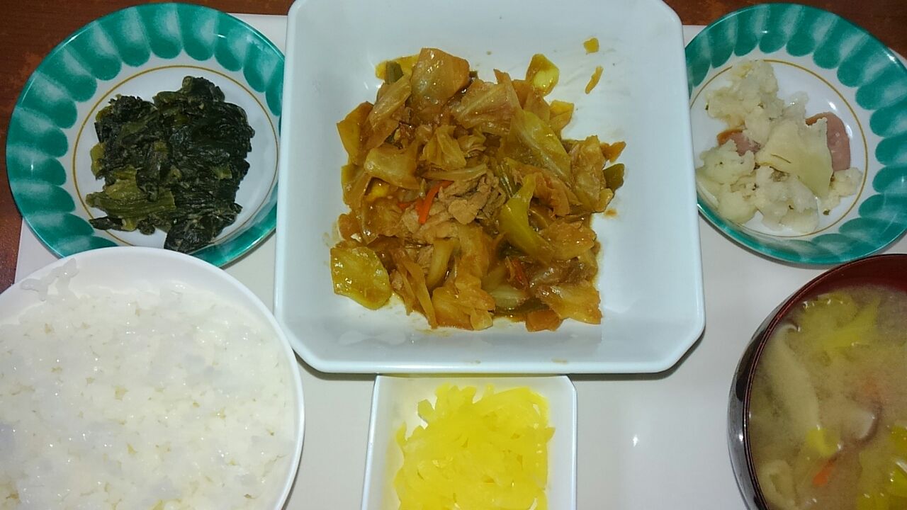 本日のメニュー 2017.04.18 11:11 本日のメニューです(4月18日) 昼食 主食 ごはん 味噌汁 主菜 ホイコーロー 副菜 カリフラワーとソーセージの ハーブソテー ほうれん草のゴマ和え 添え物 刻みたくあん夕食 主食 ごはん 味噌汁主菜 さばのカレー焼き副菜 お煮しめ 彩り卯の花添え物 しそ昆布