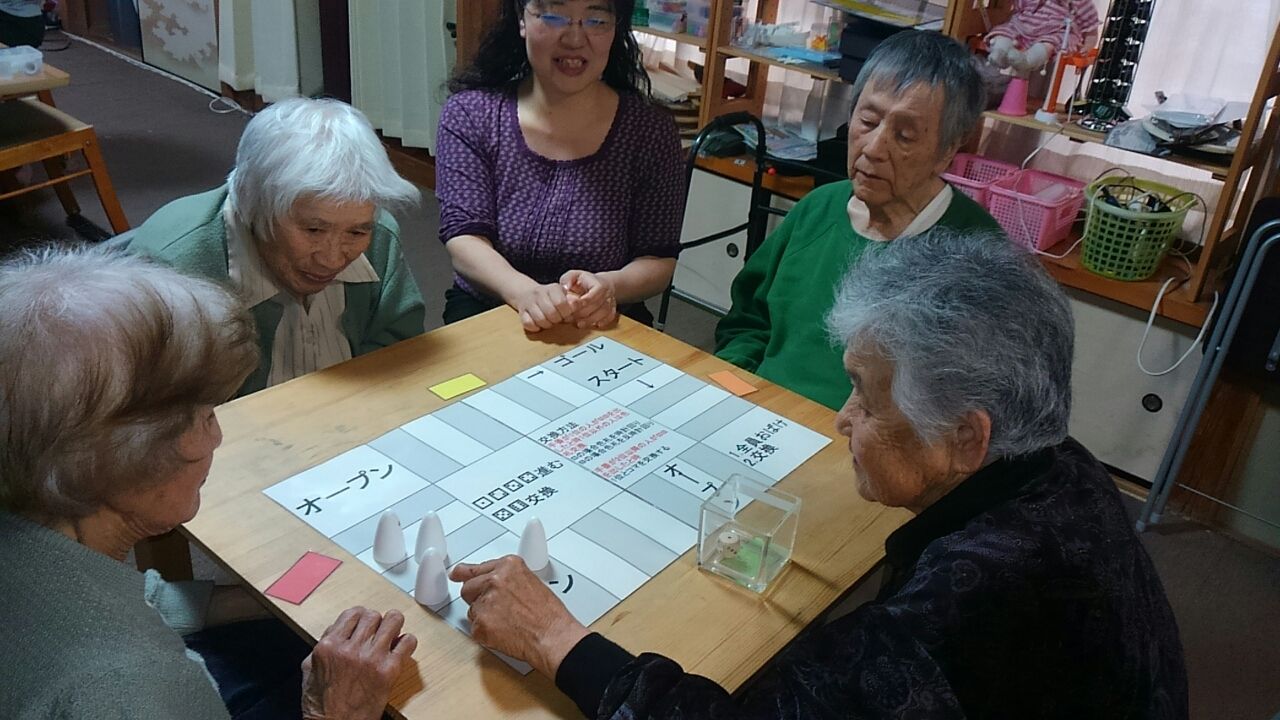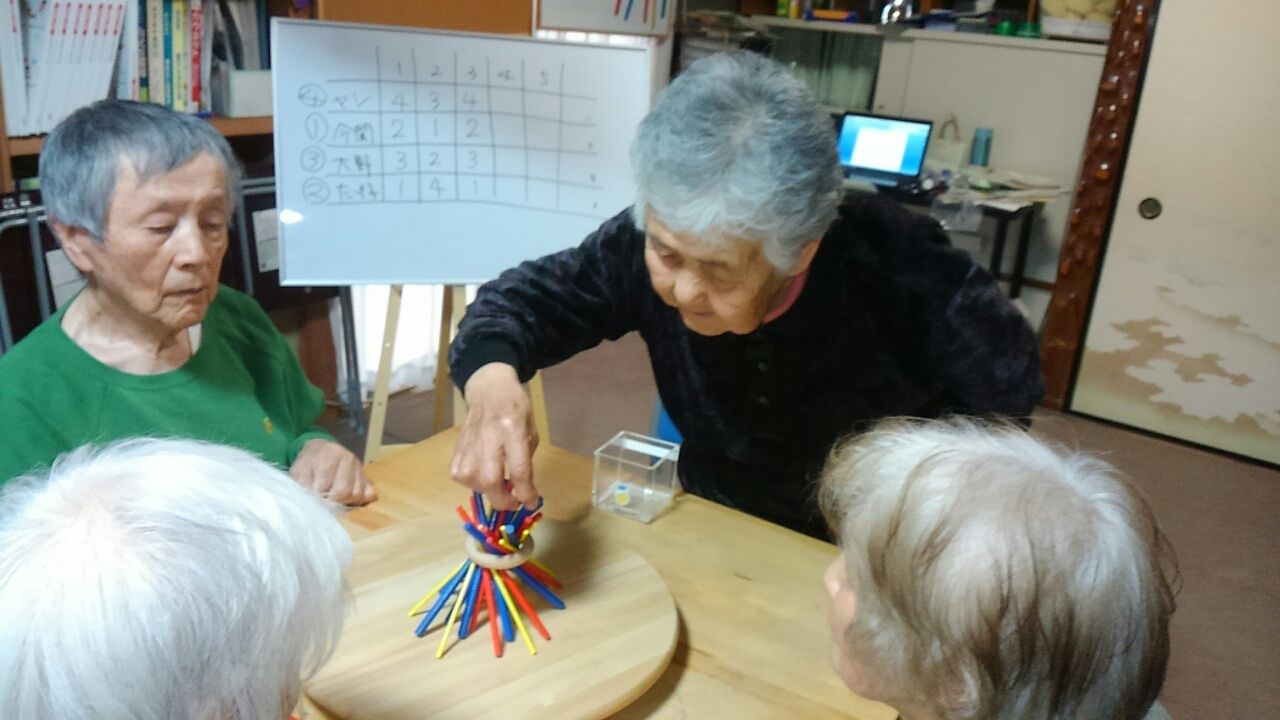 オバケだぞー。ステイッキー 2017.04.21 11:23 記憶のレクレーションで、オバケだぞーです。オープンで、自分のオバケを覚えて交換が何回かあると間違えてしまうようです。それでもオバケを覚えていても1位になれない方もいました。 ステイッキーをしました。それでも皆さん上手にステイッキーを脱いていました。