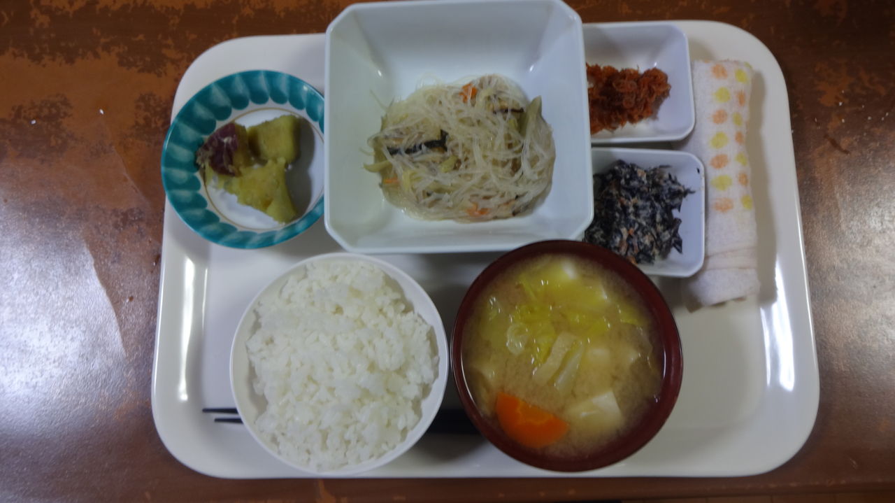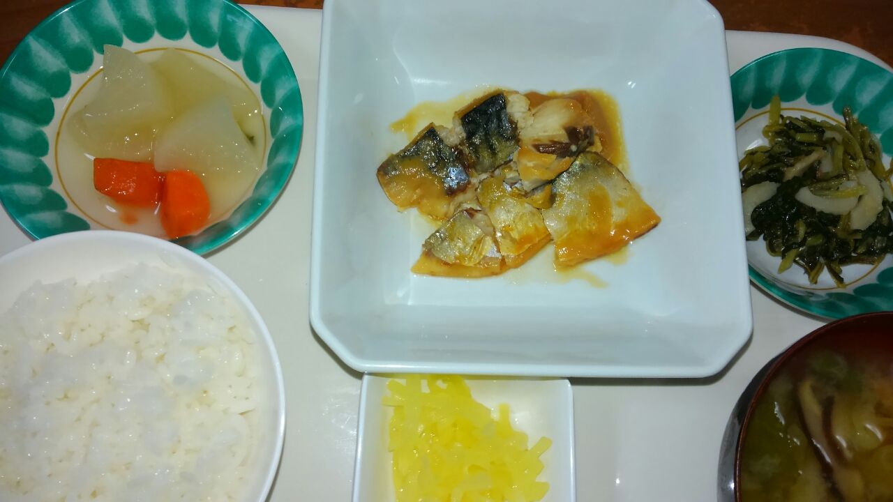 本日のメニュー 2017.05.02 11:20 本日のメニューです(5月2日) 昼食 主食 ごはん 味噌汁 主菜 さばの味噌煮 副菜 ふろふき大根 ちくわと青菜のゴマ油和え 添え物 刻みたくあん夕食 主食 ごはん 味噌汁主菜 春雨と豚肉の炒め煮副菜 さつま芋の甘煮 ひじきの白和え添え物 あみの甘露煮