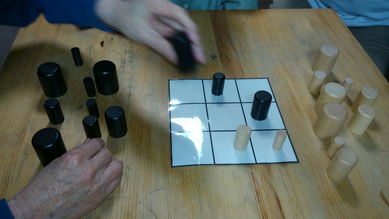 コブレット 2017.05.02 11:21 コブレットをしました。 大、中、小、ミニの円筒を3列縦、横、斜めどちらかにそろえれば勝ちです。 初めてのゲームなので最初は、少し戸惑いましたが、分かりだしたらすぐ勝敗が、決まりました。