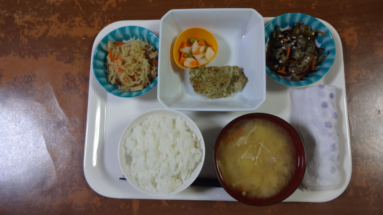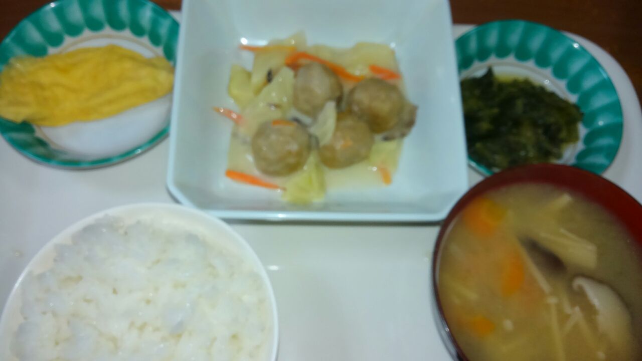 本日のメニュー 2017.05.08 11:22 本日のメニューです(5月8日) 昼食 主食 ごはん 味噌汁 主菜 肉団子と野菜のクリーム煮 副菜 オムレツ 添え物 菜の花のピーナッツ和え夕食 主食 ごはん 味噌汁主菜 さわらハーブ衣焼き副菜 切干大根煮 おくらとひじきの和え物添え物 ミックスべジポテト