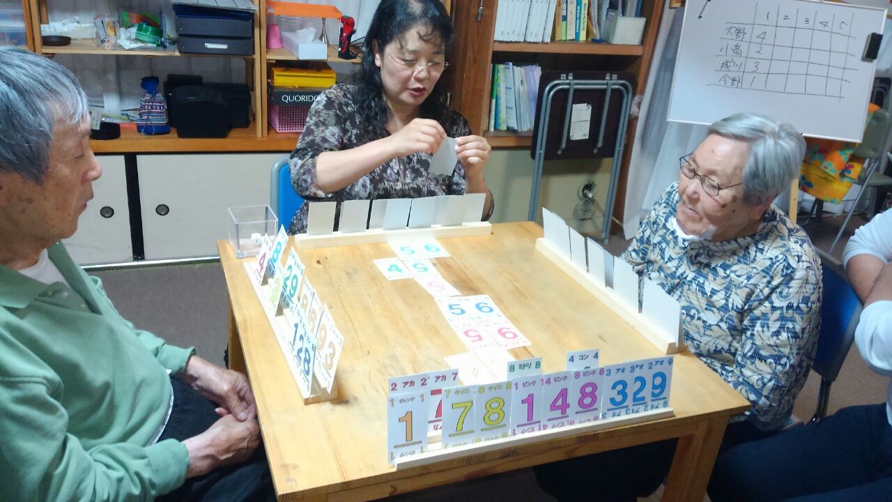 トランプ 2017.05.13 11:07 トランプで、7色5ならべを職員交えて4人で行いました。 最初は、普通の5ならべをして、パスすると多い人からカードをもらってやりました。次から3までのサイコロを振り出た数の枚数を出すことにしました。出せる時は、いいのですが出せないとその枚数をもらうことになってしまいます。カードを出す時は、最初の数と最後の数を出すといいです。