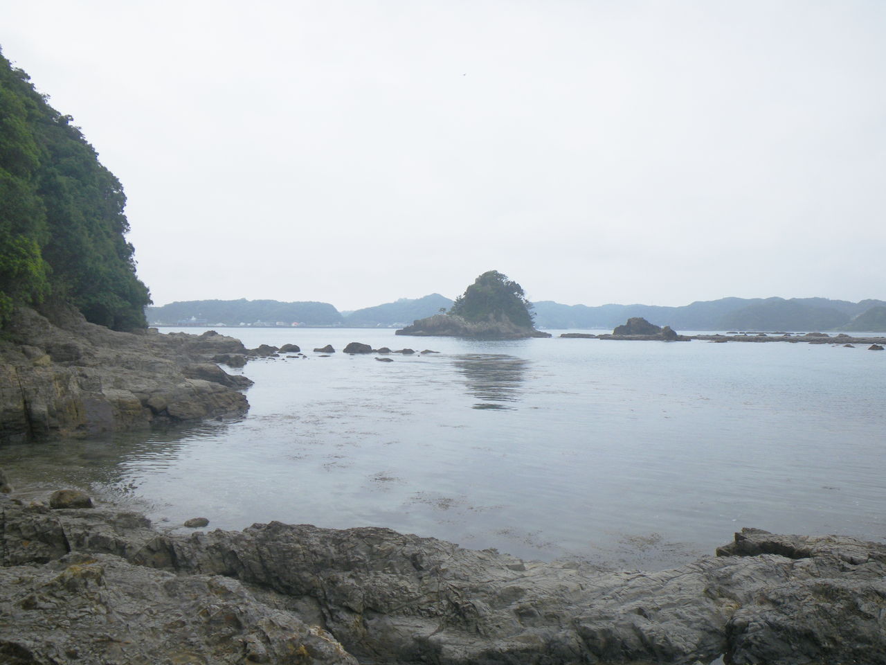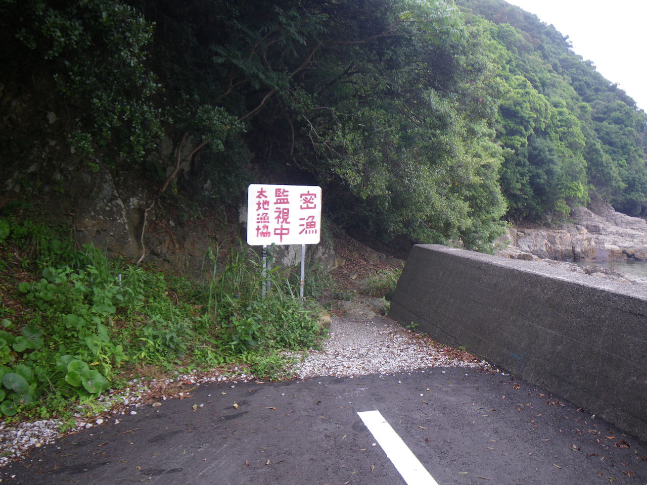 和歌山県東牟婁郡太地町太地 (夏山園地) 2015.06.07 05:08 和歌山県東牟婁郡太地町太地 旅館もみじや付近です。この辺も那智勝浦町と思いきや、太地町みたいです。よくわかりませんが38××番地がある付近です。 ホテル街の勝浦町とは雰囲気が変わって、綺麗な景色が広がっています。 静寂な磯と草原が広がっています。 トイレも完備。磯遊びに適した場所でしょう。 誰もいません。。。。。笑。先の方に釣り人2名のみです。 密漁禁止。先の磯へ進んでみます。 藻がいっぱい。 深くないので、子供も安全。 先には、勝浦と同じように穴がありました笑。