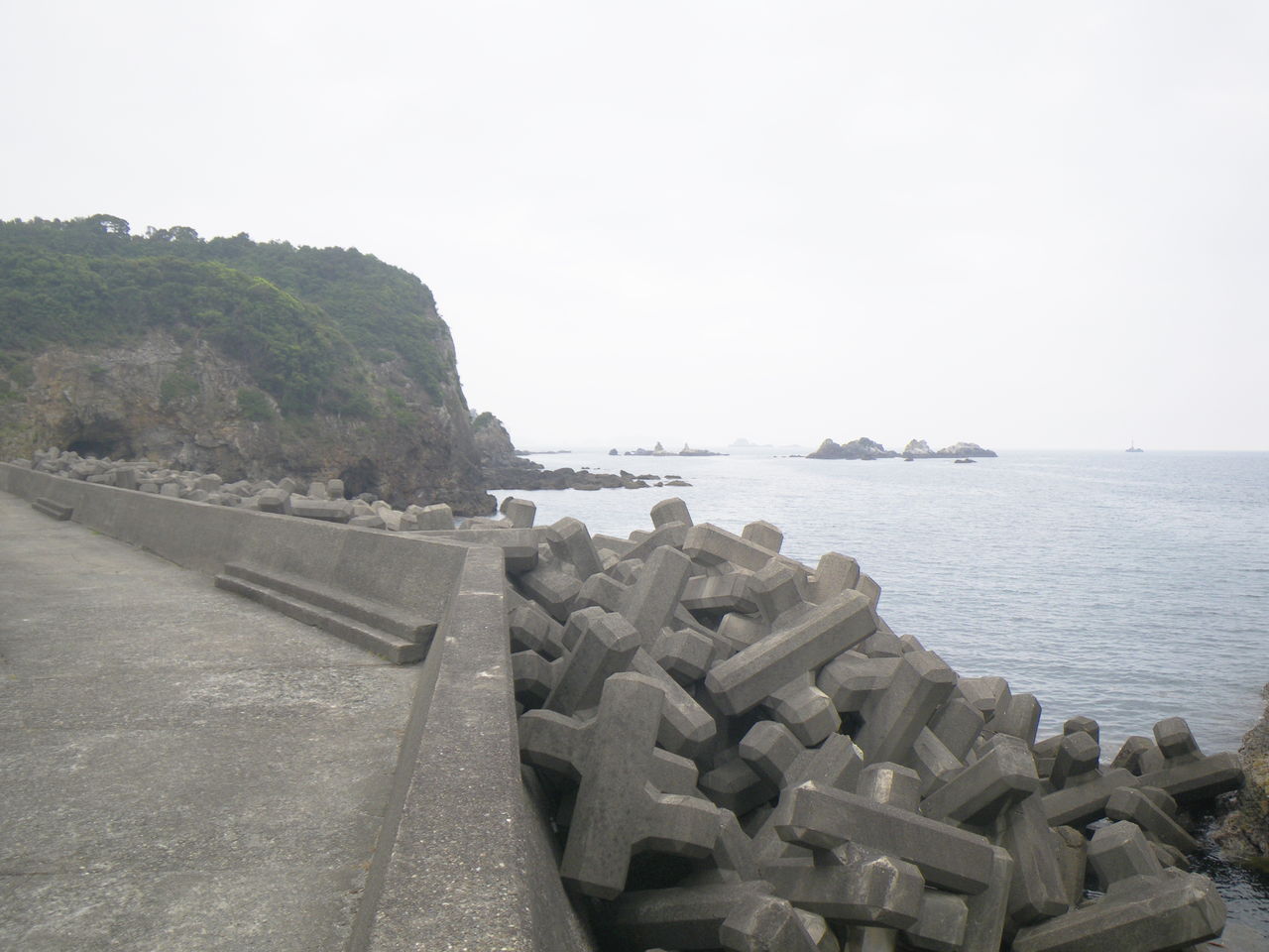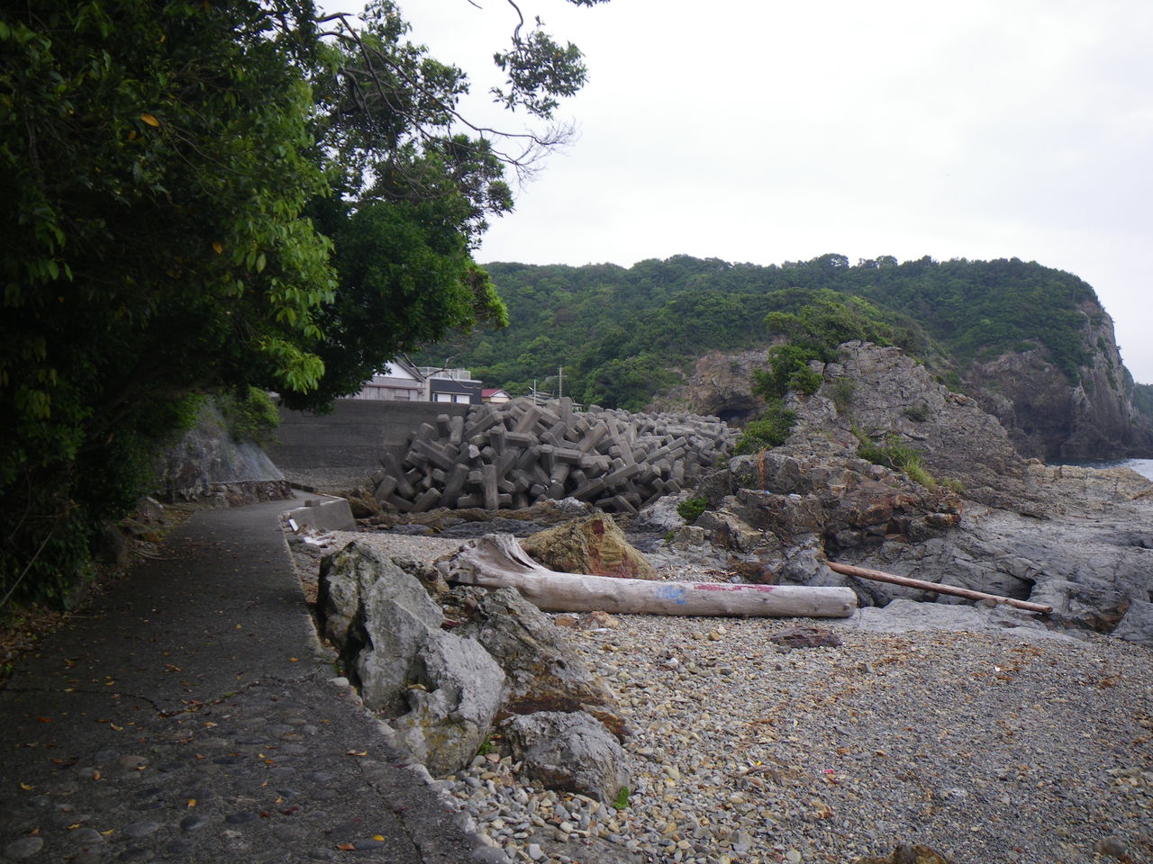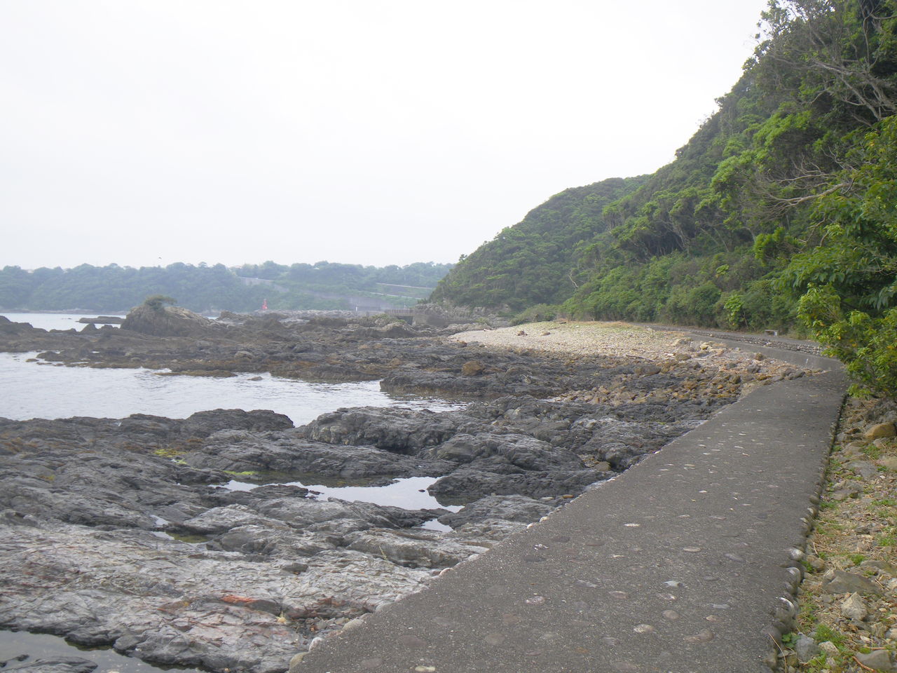 和歌山県東牟婁郡太地町太地 (暖海公園山裏側) 2015.06.08 08:45 和歌山県東牟婁郡太地町太地 暖海公園の山の裏側にある太地湾の歩道です。 道路脇に1台とまってます。あまりスペースがありません。 手前側に階段があります。太地湾へと続く歩道があります。 歩道は南側へ続き、漁港へと向かいます。 磯が広がっています。 新宮から白浜までこれはいっぱいでてきます。この時はまだ気づいてませんでした。 太地漁港の防波堤とでます。意外にここは水深があります。 漁港内です。ここはスペースがたくさんあります。