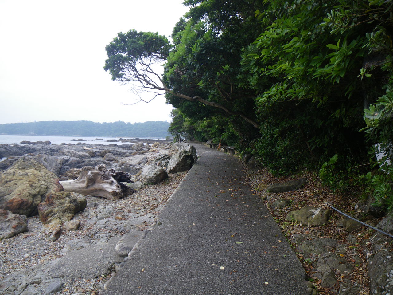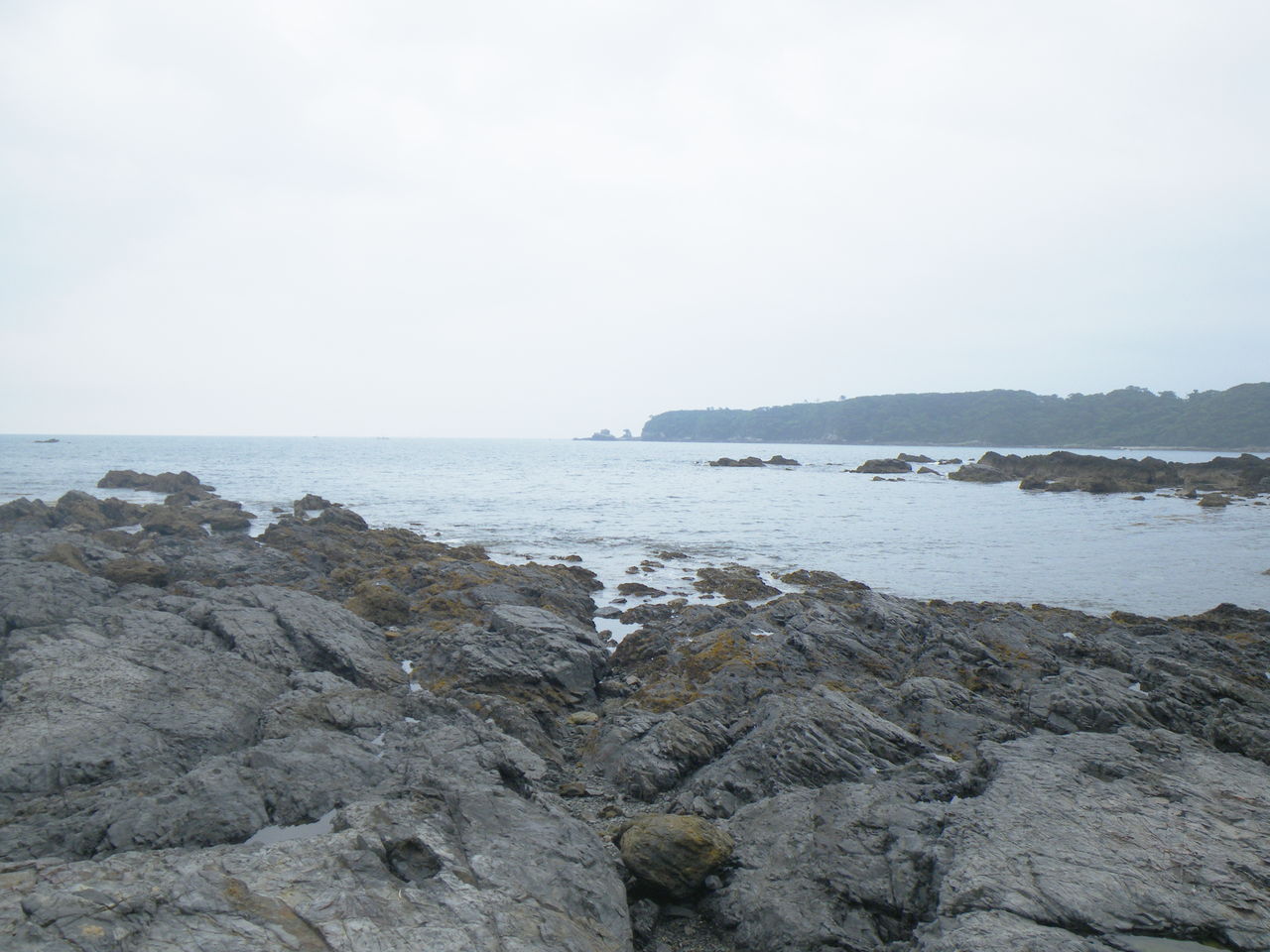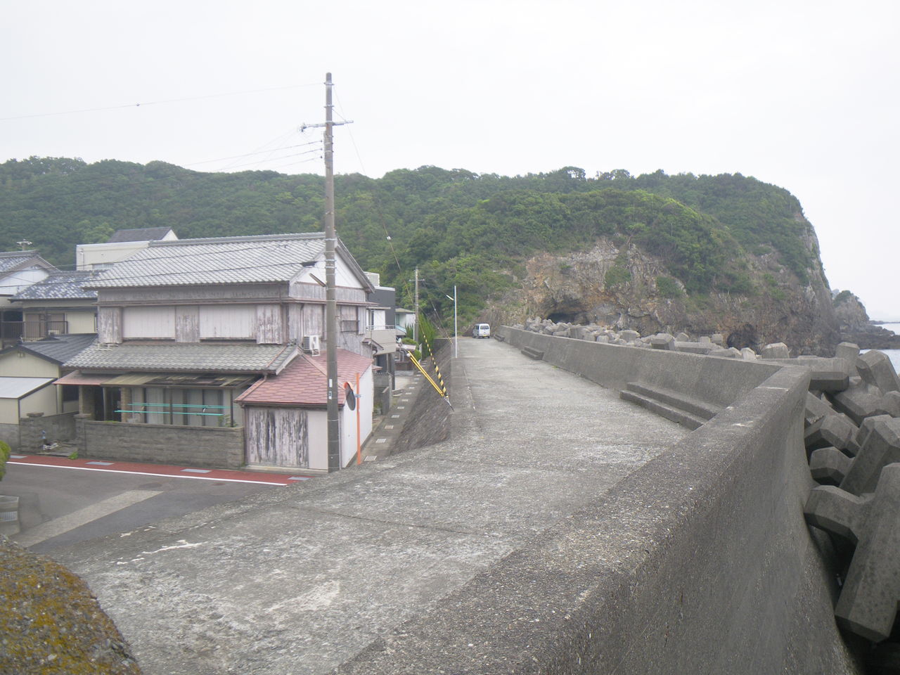 和歌山県東牟婁郡太地町太地 (暖海公園山裏側) 2015.06.08 08:45 和歌山県東牟婁郡太地町太地 暖海公園の山の裏側にある太地湾の歩道です。 道路脇に1台とまってます。あまりスペースがありません。 手前側に階段があります。太地湾へと続く歩道があります。 歩道は南側へ続き、漁港へと向かいます。 磯が広がっています。 新宮から白浜までこれはいっぱいでてきます。この時はまだ気づいてませんでした。 太地漁港の防波堤とでます。意外にここは水深があります。 漁港内です。ここはスペースがたくさんあります。