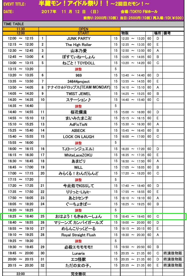 2017/11/12(日)『半蔵モン!アイドル祭り!!』出演情報