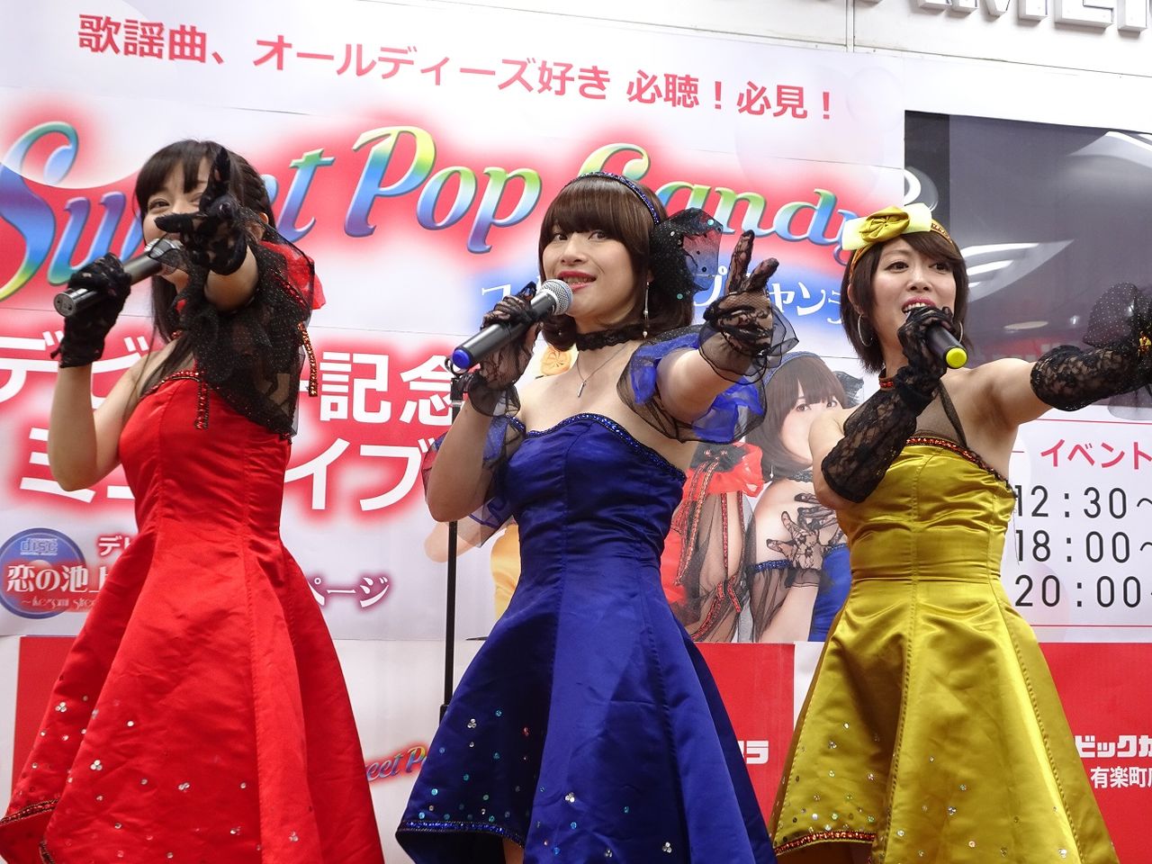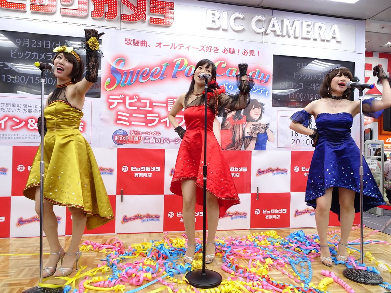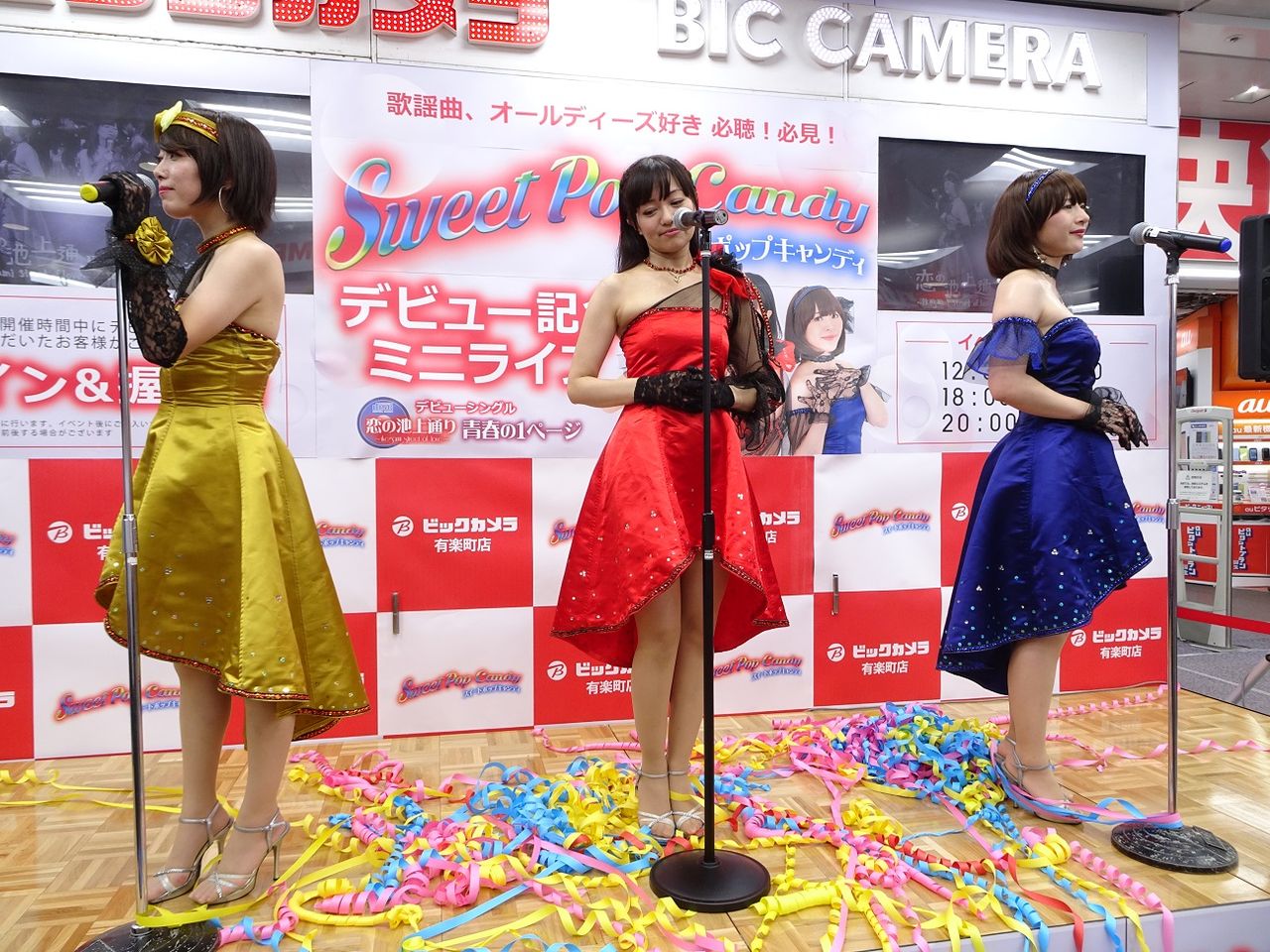 ビックカメラ有楽町店さんでのスイートポップキャンディのデビュー記念ミニライブ。この日は12:30、18:00、20:00の3回ステージ。