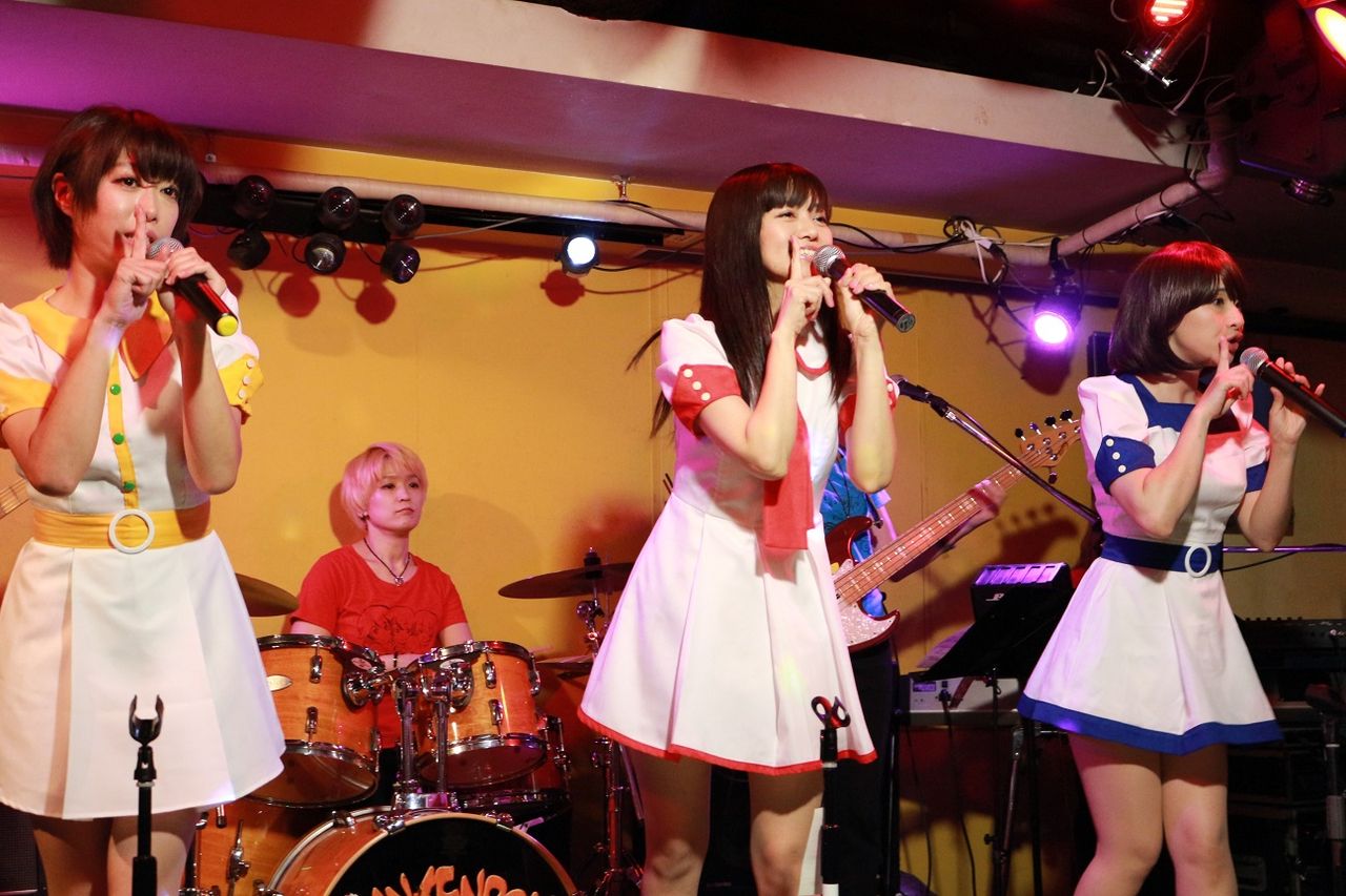 スイートポップキャンディが「恋の池上通り/青春の1ページ」でメジャーデビューする8月2日まであと3日! この日は恵比寿JANKENPONでスイートポップキャンディのまさに出陣式。スイートポップキャンディの3人も気合十分!