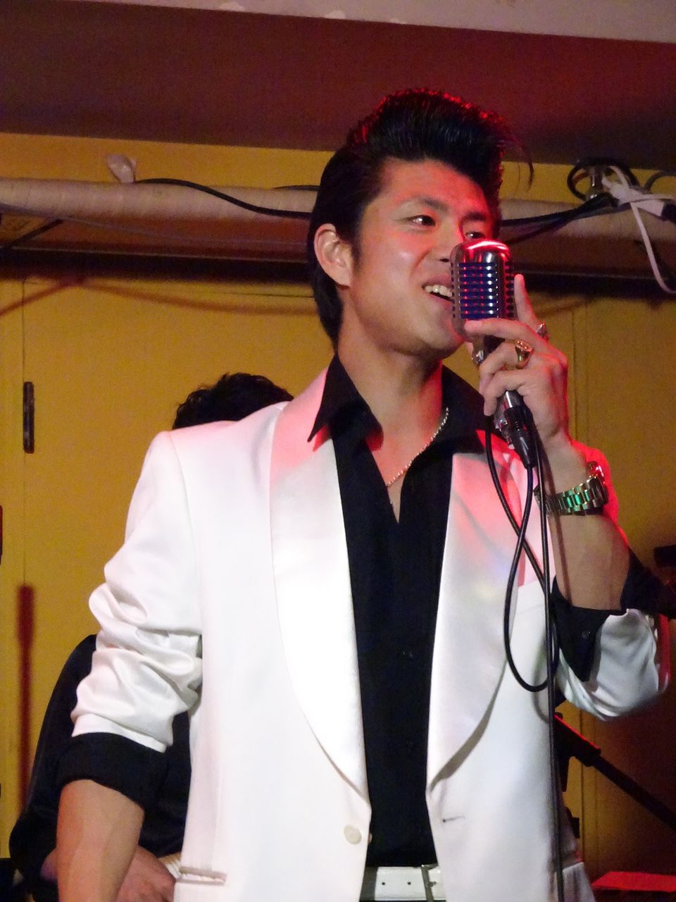 この日は日本一のエルヴィス・桐生大輔さんの記念Tシャツを着て参戦。私のようなオヤジが大ちゃんTシャツを着ているのは珍しいようです。でも、念願の世界チャンピオンになって欲しいという願いは一緒です。
