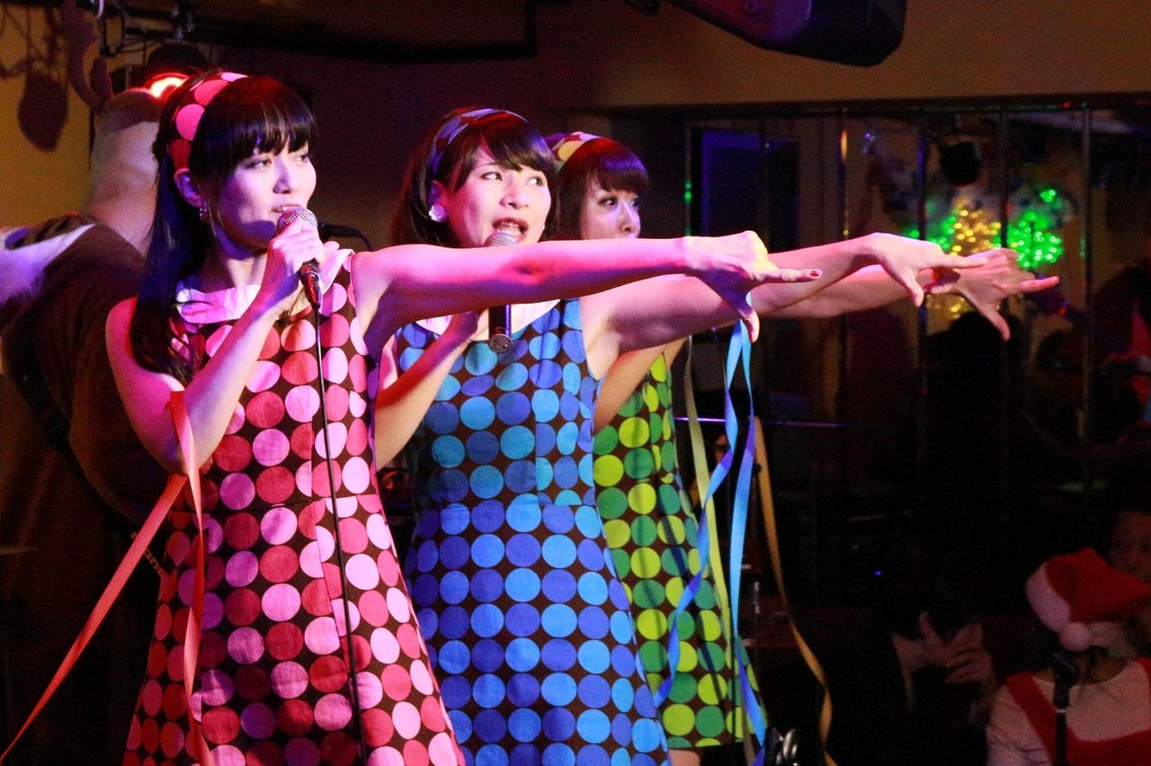 この日のスイートポップキャンディは、ナンスィ・すばる・りえの3人。ナンスィさん、りえちゃんは東京ヒーステリックリッパーバンドで歌ったことはありますが、すばるちゃんは初めて。東京ヒーステリックリッパーバンドでスイートポップキャンディはもちろん初めて。