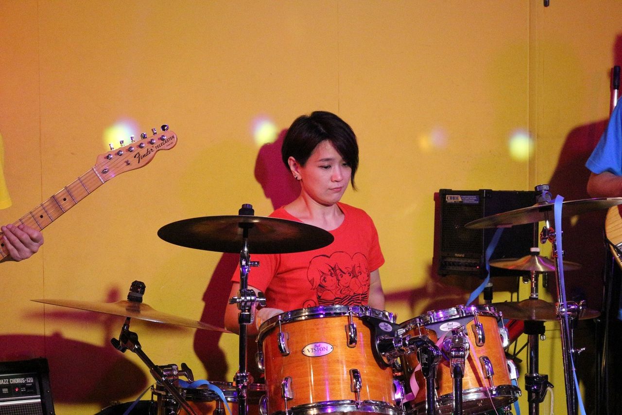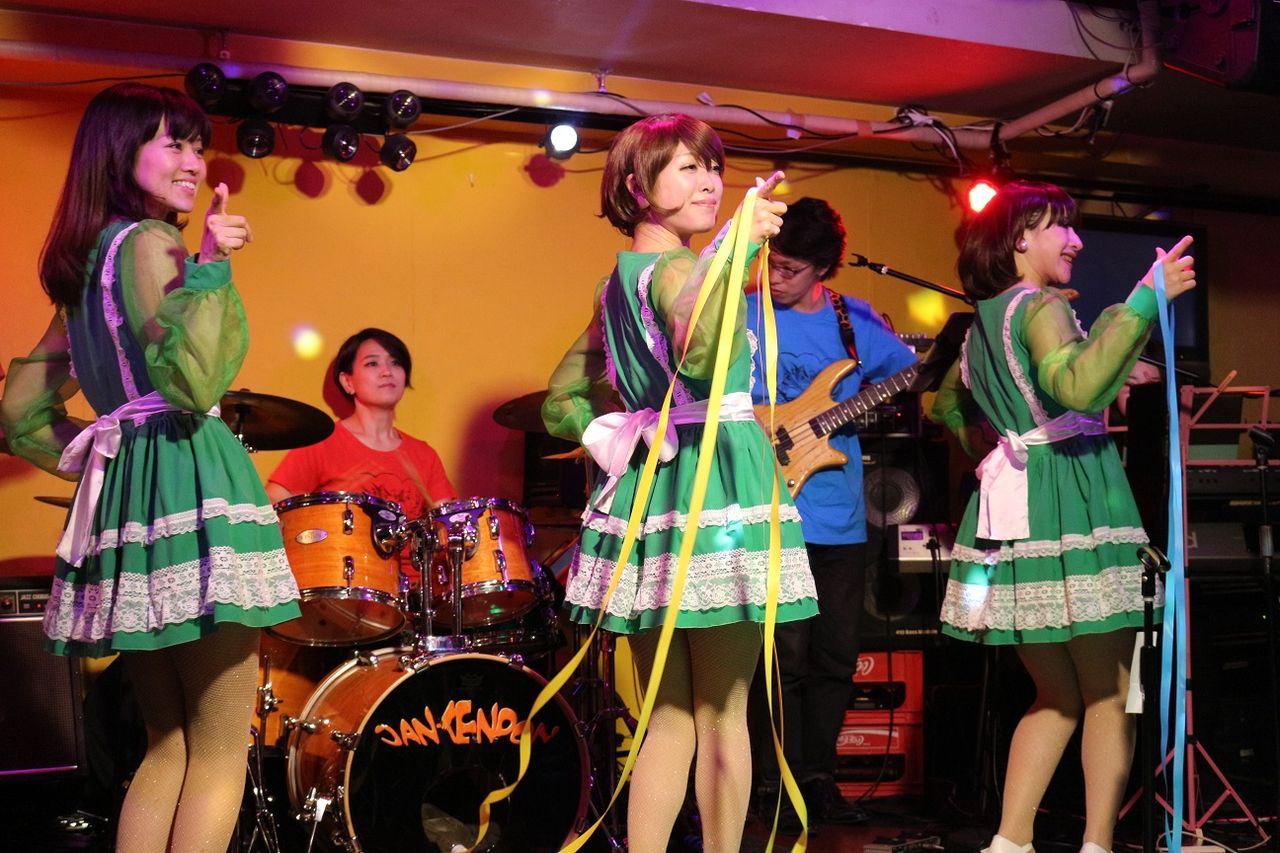 この日のバンドはスイートポップソーダ。ギターはゴンちゃん、ベースはシンシン、キーボードはミポンヌちゃん、そしてドラムはセンナさんが代打です。