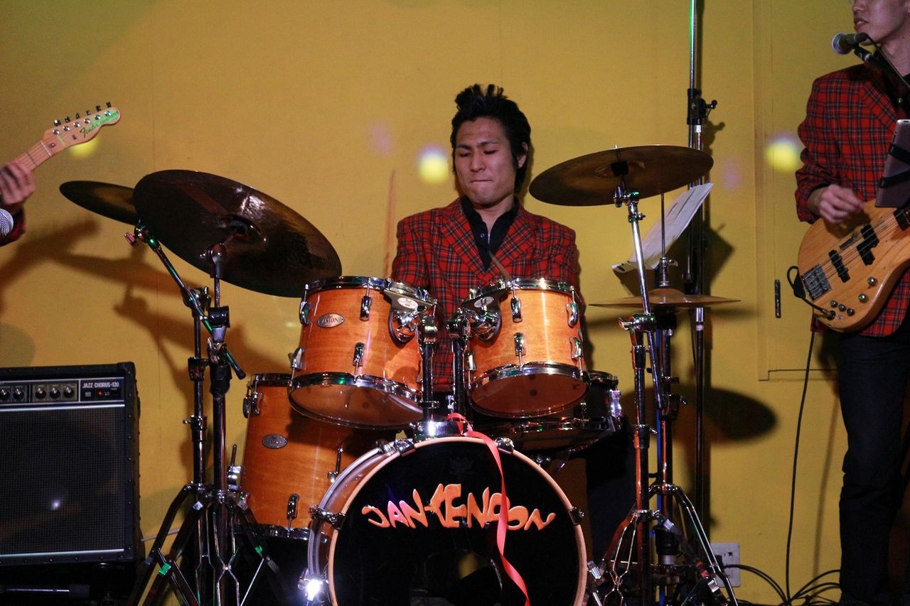 ヴォーカルがいないときはガンガン叩きます。@ワイプアウト