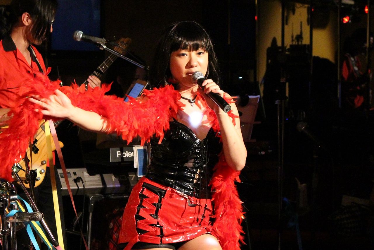 この日は、りえさんが「アイドル歌謡曲イベント」に初参加。三原じゅん子熱唱中。ハスキーな声が印象的。