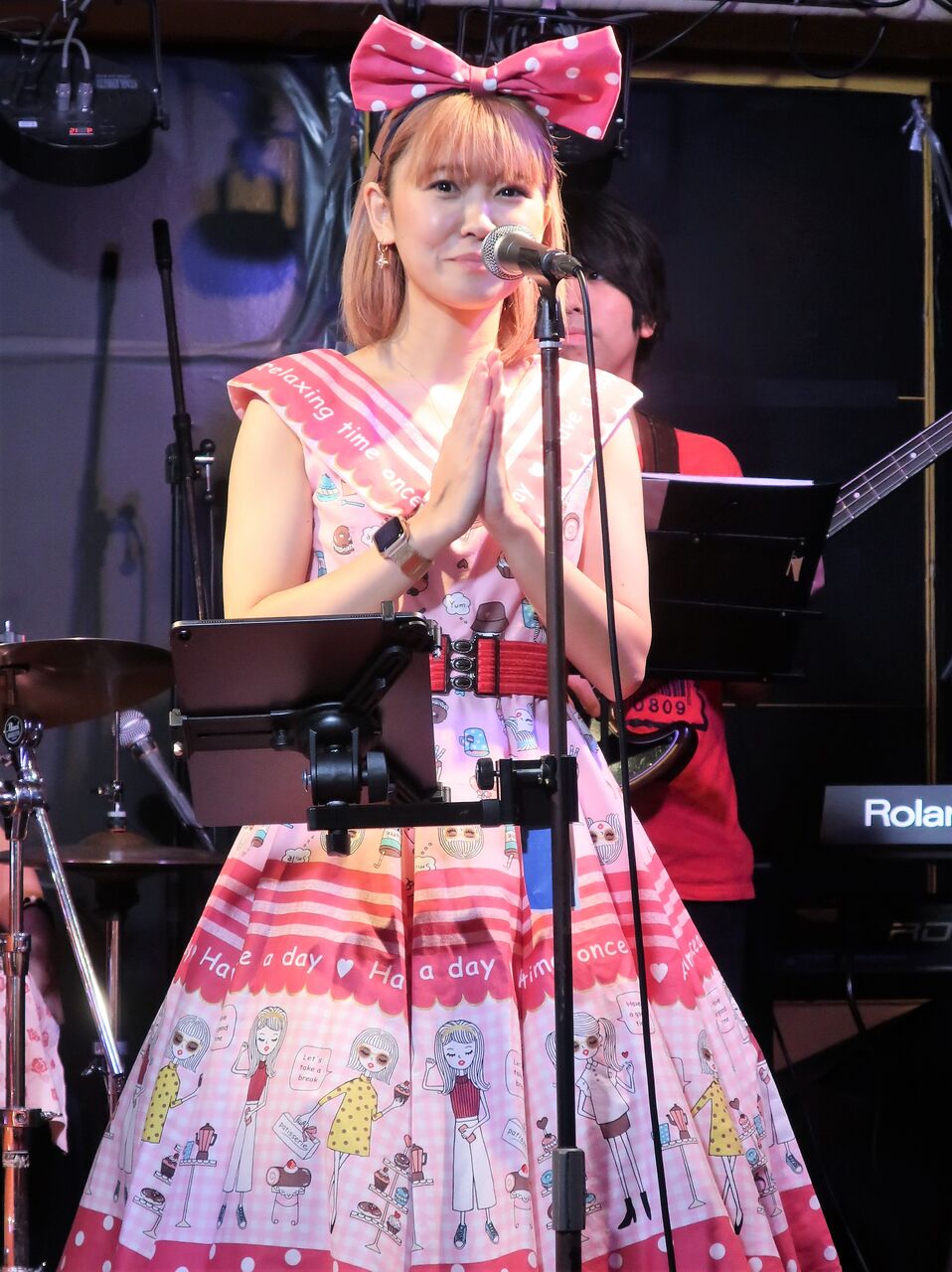 大きなリボン。可愛すぎるぞ、綾香嬢。初披露曲「Bye-Bye ガール」をナンスィさんと歌うという大役の緊張から解放されて綾香さんにやっと笑顔が戻りました。