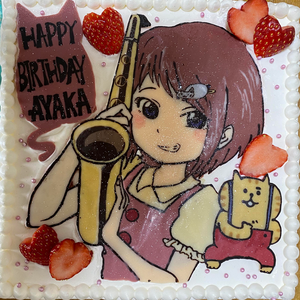 綾香さんのバースデーケーキは歌手のEllieさんに製作をお願いしました。仕上がりも綺麗で美味しかったです。綾香さんも喜んでくれました。Ellieさん、ありがとうございました。