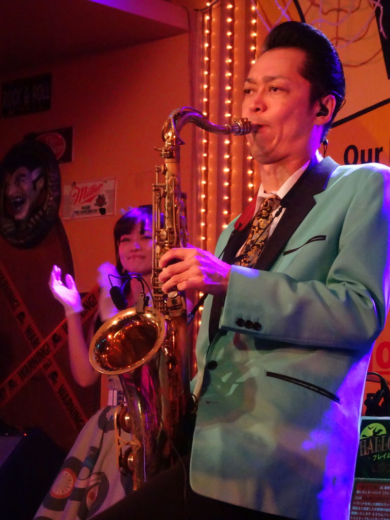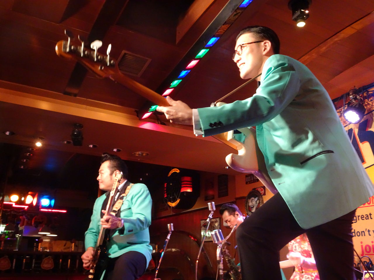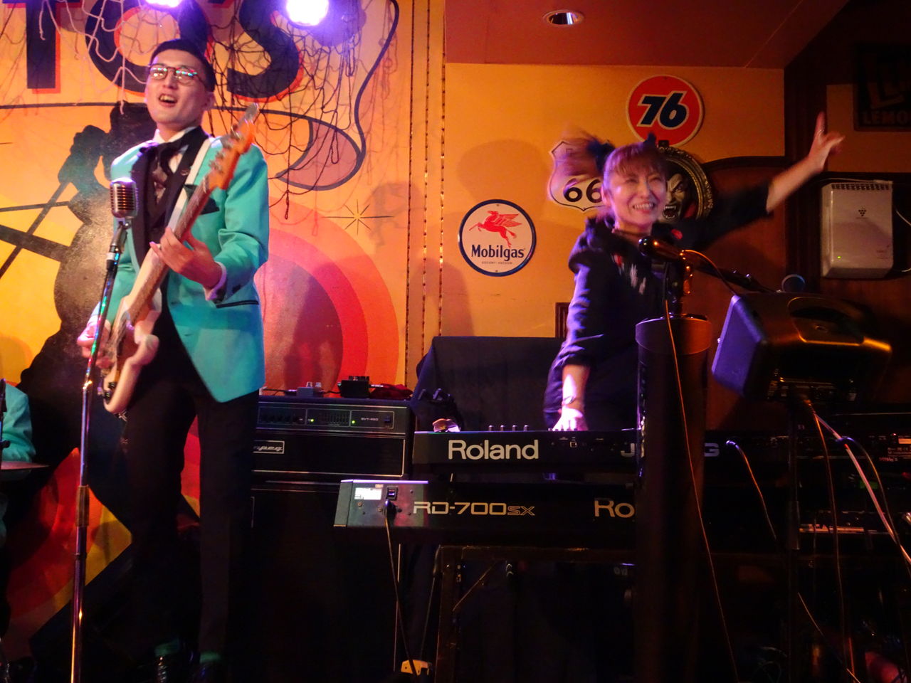 ギターのモーリーさんとベースのリョースケさん。2人で前に出てきたところ。
