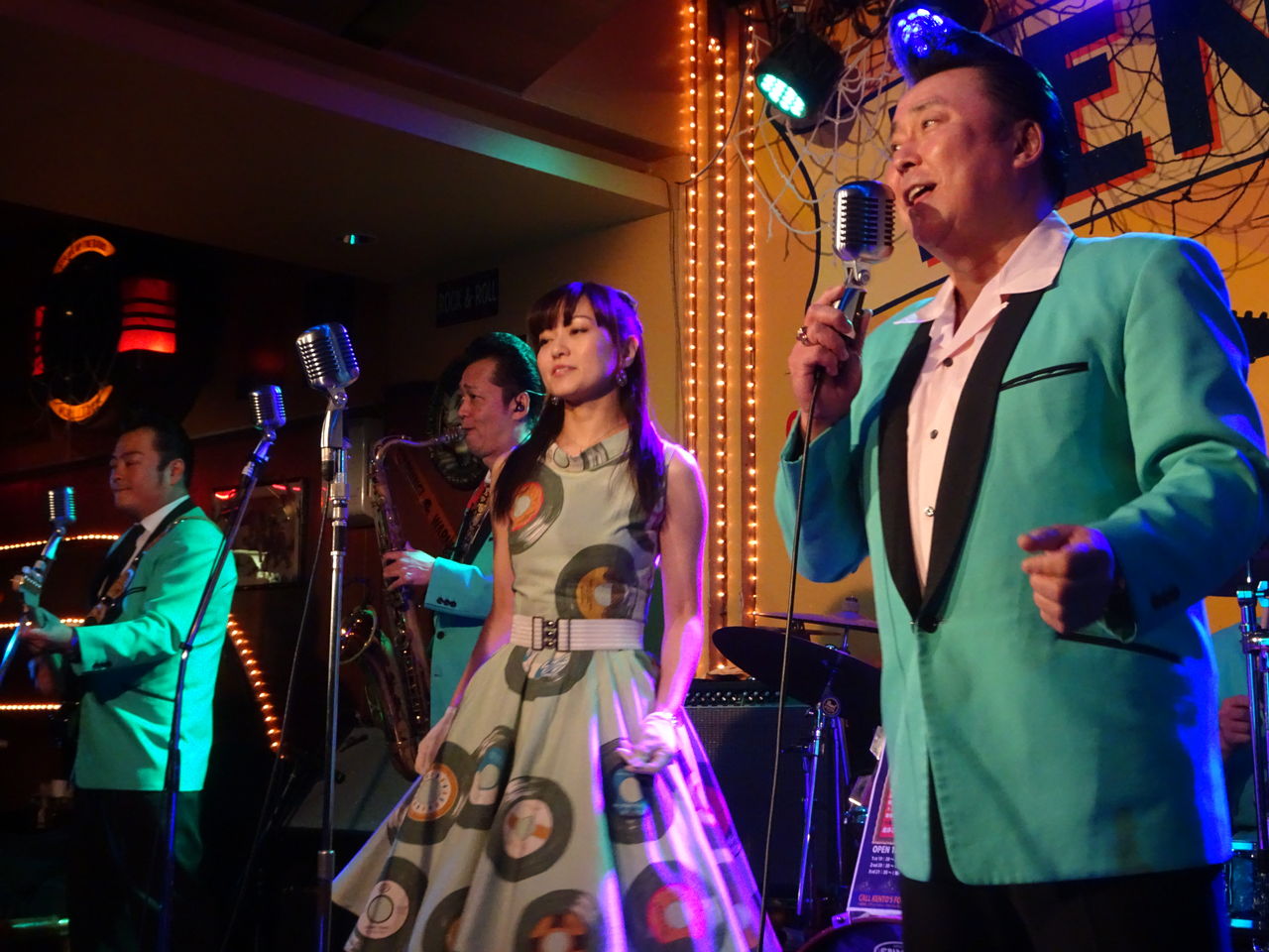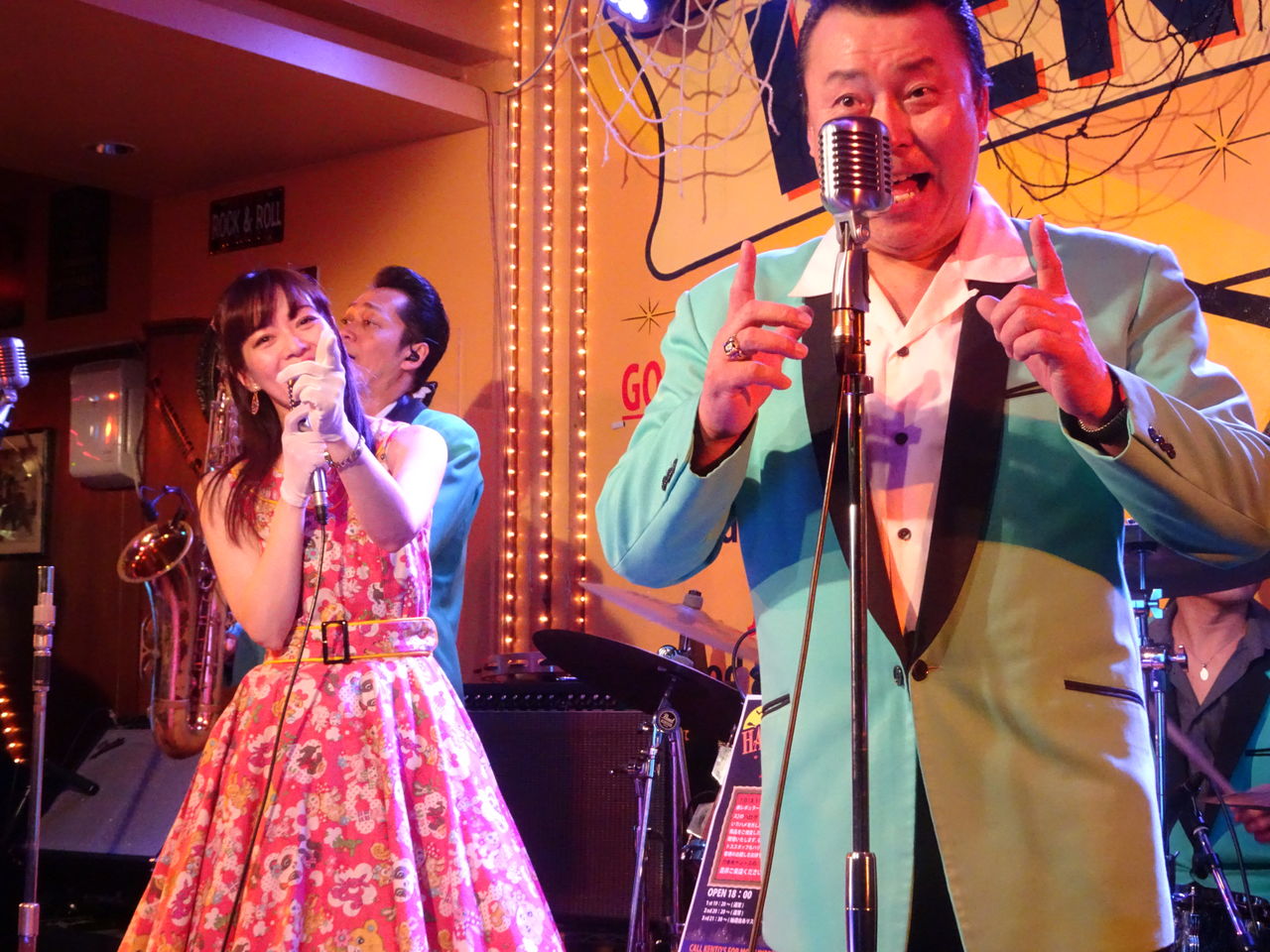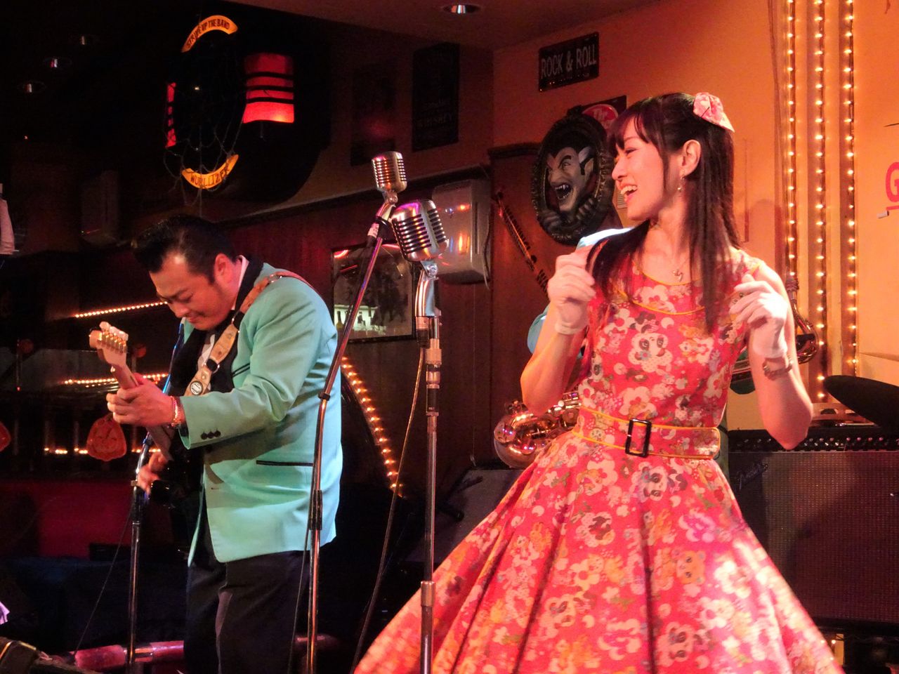 ギターのモーリーさんとベースのリョースケさん。2人で前に出てきたところ。