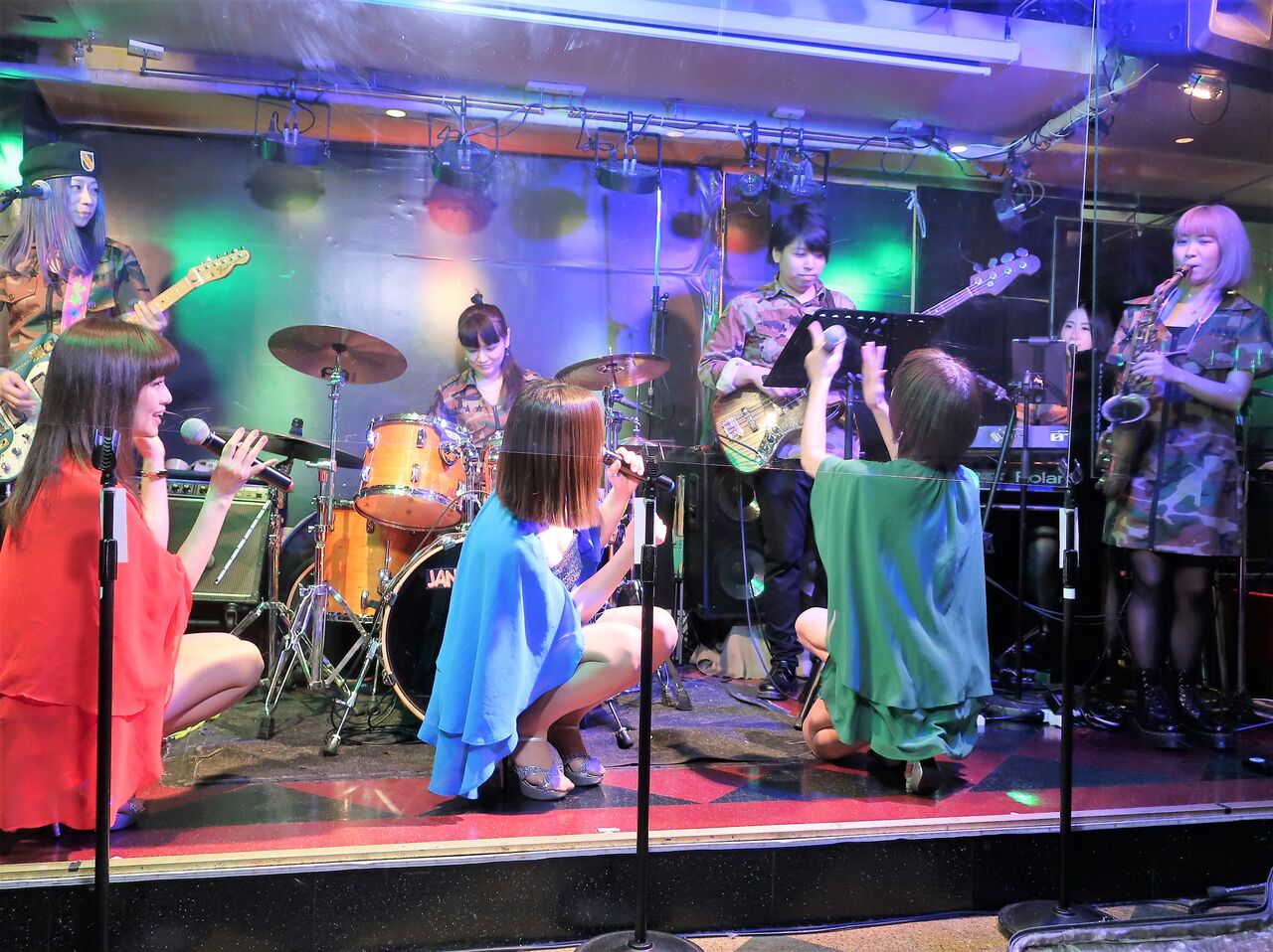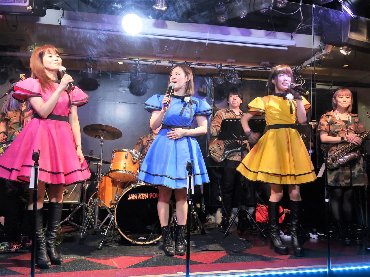 マンボウ期間中につき、恵比寿JANKENPONのステージには防弾ガラスが設置されています。紙テープ投げができない分は、手拍子やコールでしっかり応援。