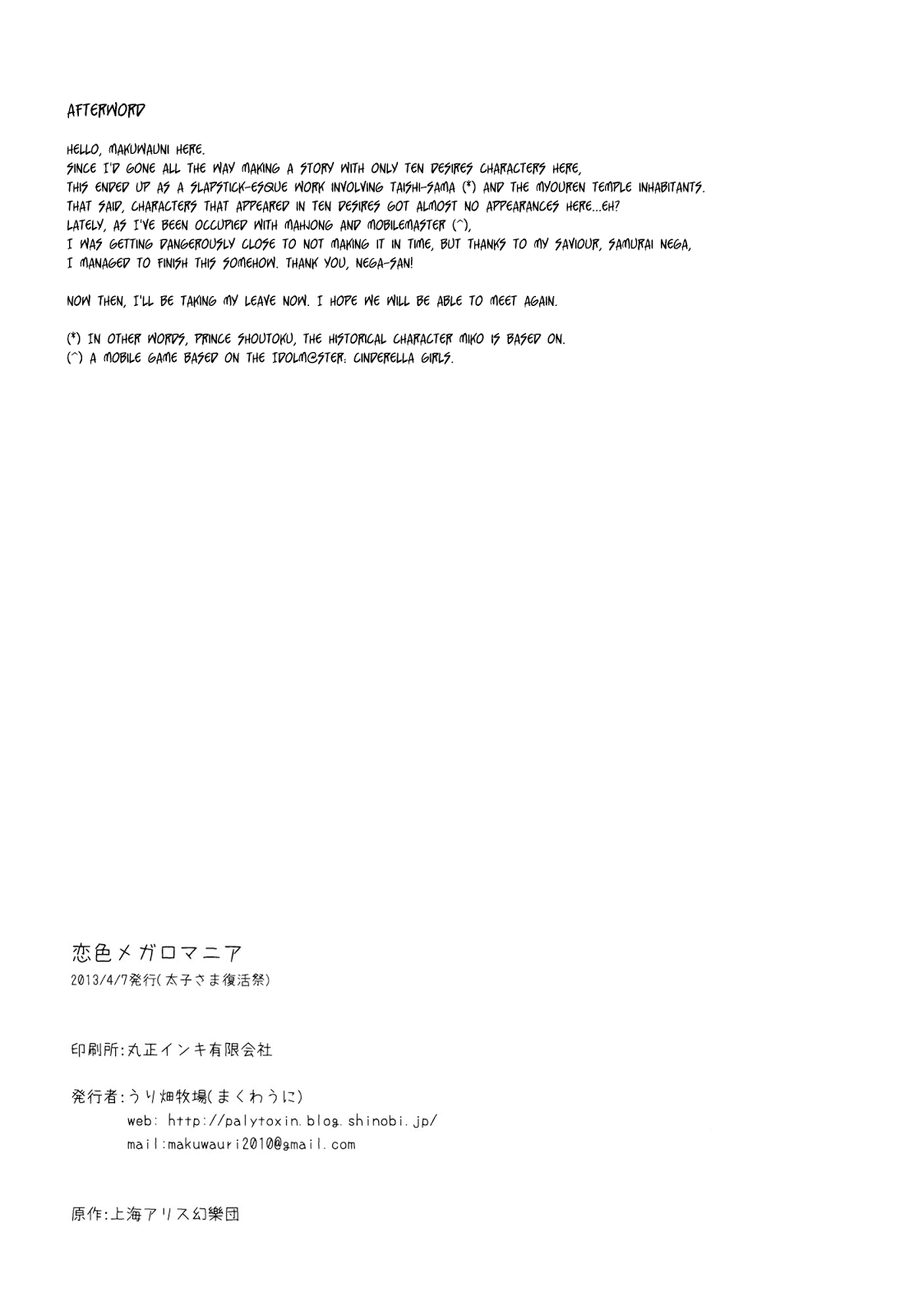 Love-Coloured Megalomania 2016.03.15 23:47 Tác Giả: MakuwauniThể Loại: Comedy Nhóm Dịch Eng - Việt: Midori Kaze