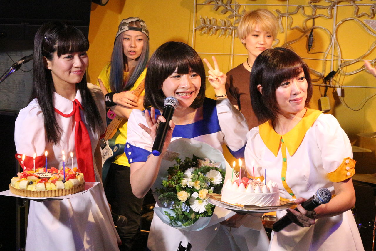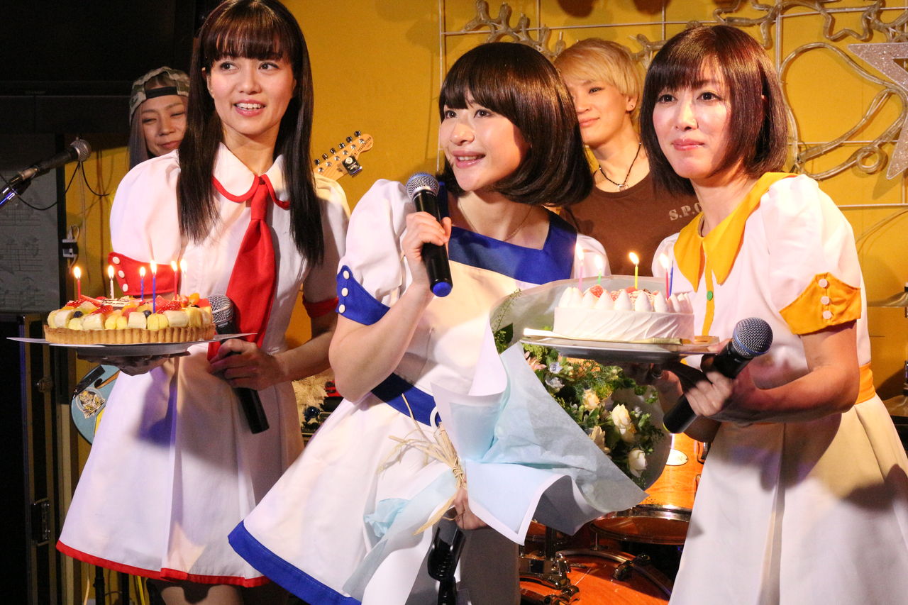 この日の恵比寿JANKENPONはスイートポップキャンディ&NNP。そしてすばるちゃんのバースデー当日のバースデーライブ。開店と同時に多くのお客さんが詰めかけ、ダンスフロアに補助テーブルがでるほどの大盛況でした。