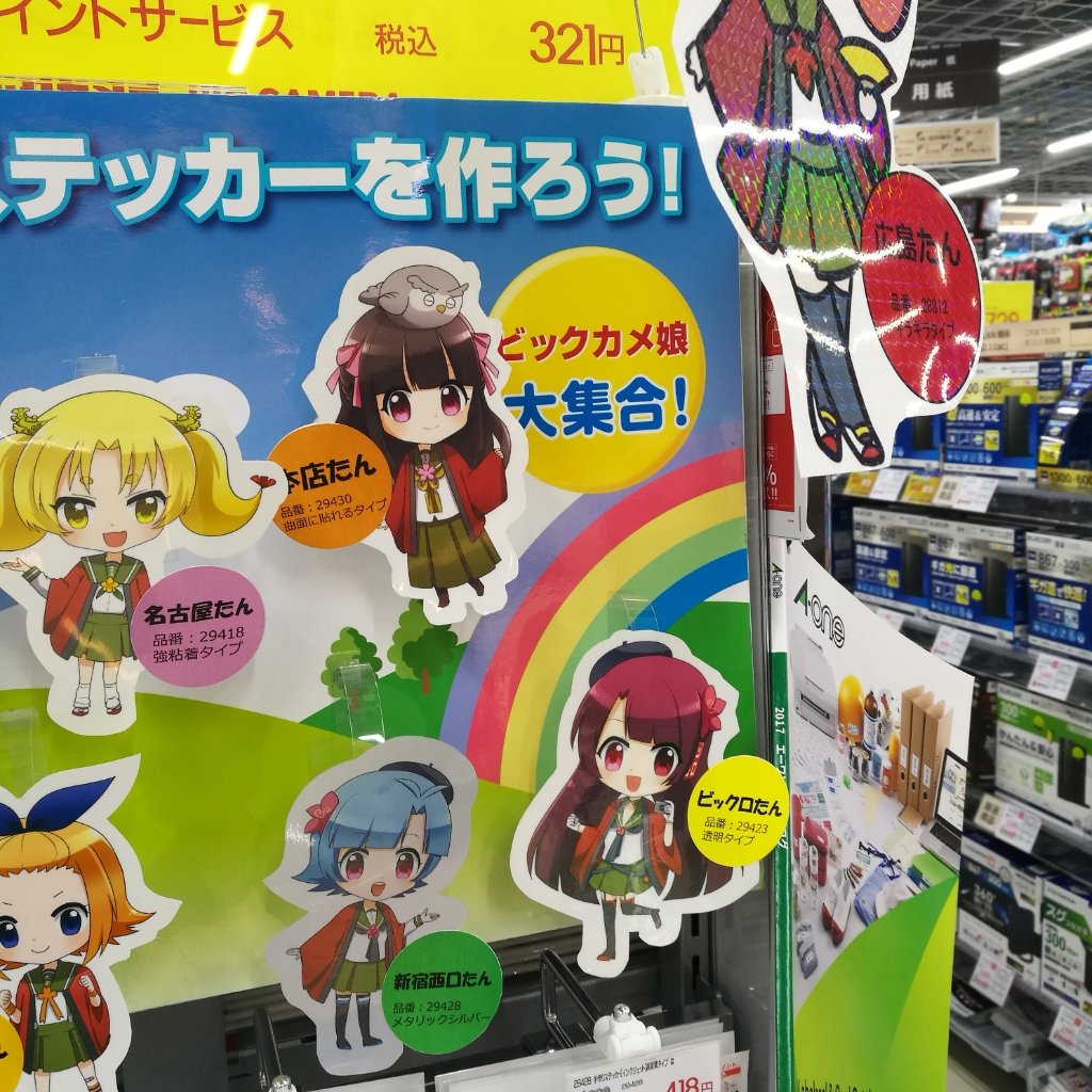 こんなところに #ビッカメ娘 が?! 2017.04.23 06:58 ビックカメラ広島駅前店に来てまして。某レンタルショップでChromecast借りてたんですがその経験をふまえつつ、買うか買わないか悩みつつ商品を見てたんです…。で、ふと振り返ると「ビッカメ娘」が!!キャラクターステッカー、楽しそうですよね!!ちょっとびっくりして思わず写真とっちゃいましたよ〜で、よーく見てみると……… ……………うん。何も見てなかった。何も見てなかったんです!!ま、かわいけりゃOKなんですけどね(^_^;)