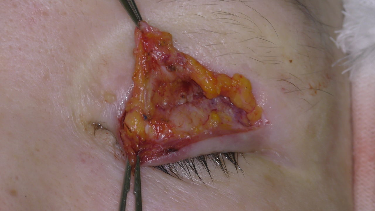 腱膜固定の糸はミューラー筋にもかかっていました