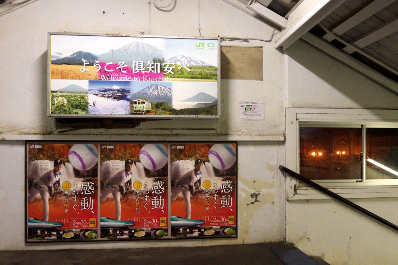 10月の北海道1(函館山線) 2016.10.15 20:38 耐えられないほど寒くはなく、シックに色づく10月の北海道は、旅費も手頃であり、旅するにはいい季節です。またも雨。今年は天気運に見放されています。激しく降る雨の中、到着した夜の比羅夫駅。 倶知安の街に出て夕食を食べ、倶知安駅に立ち寄りました。 大谷選手、野球とJRの二刀流! (続く)