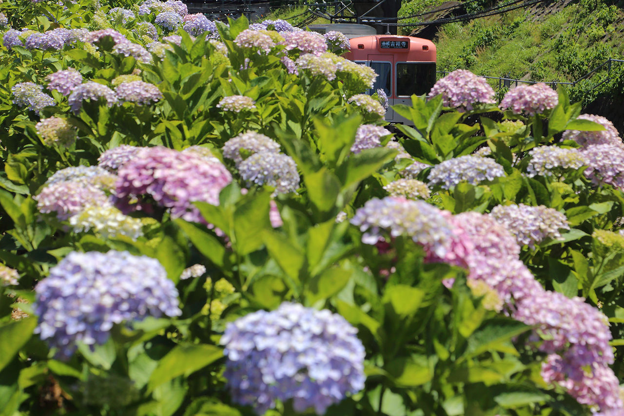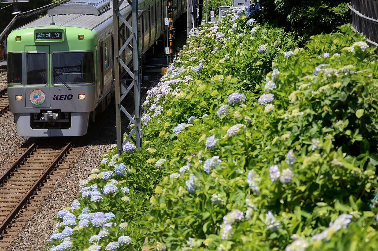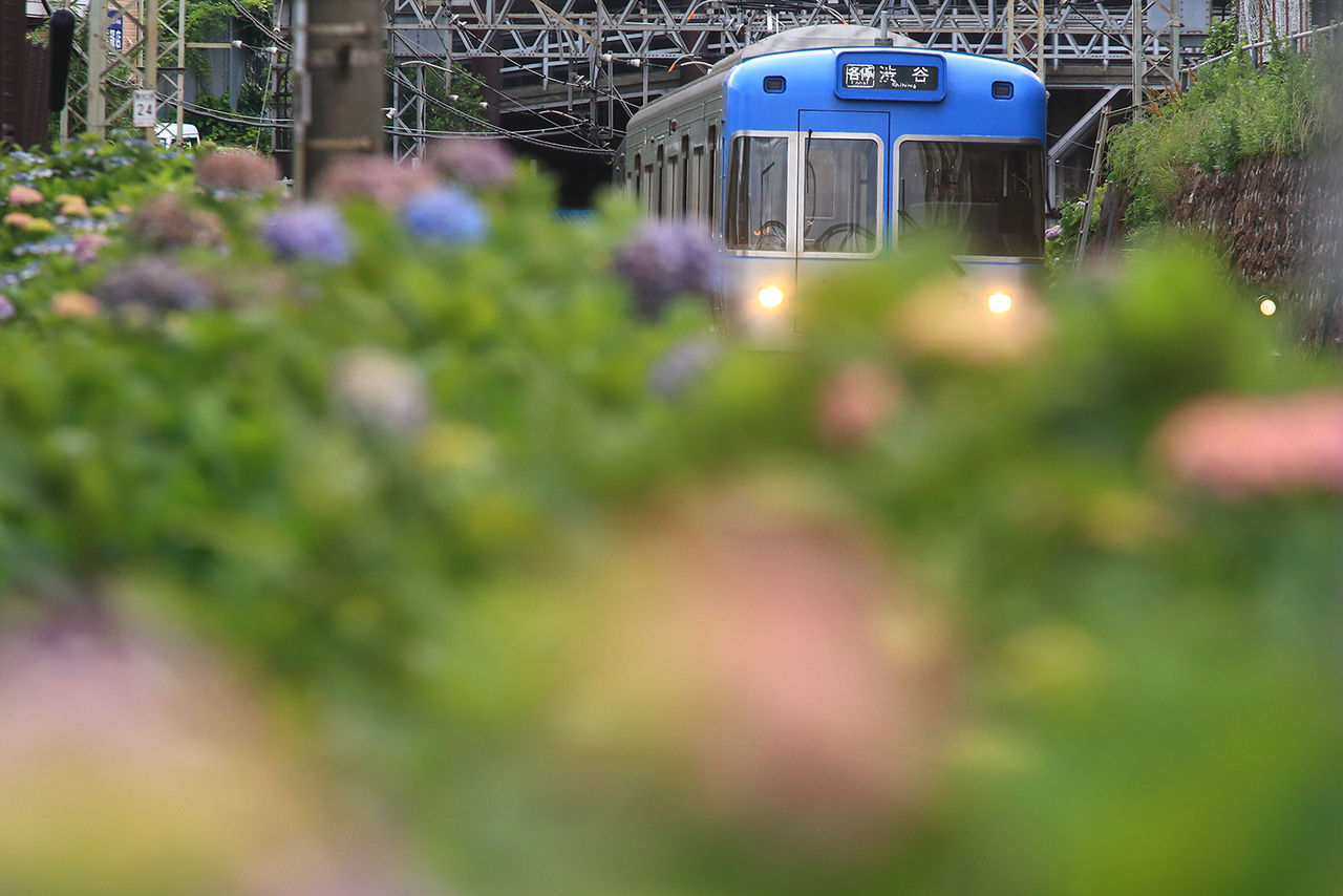 紫陽花2017① 2017.06.06 14:59 例年より遅めです。2017の紫陽花。オープニングは、井の頭線。まだ3分咲。東松原・新代田の密集地帯 撮り方工夫して いつもの明大前もイマイチの咲きぶり。ひと雨降れば、元気に輝くかも