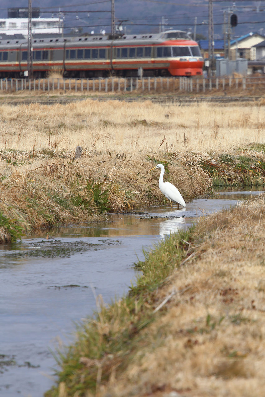 冬箱根3(小田急 富水) 2018.02.03 23:28 金曜日の雪は、箱根で随分と積もった。翌土曜日(2/3)、再び、箱根路へ向かいました。もしかして、栢山・富水が雪原になっているのではと期待しましたが、まったく雪はなし。 白鷺が逃げないようにとゆっくり近づいて。LSE通過時には、いいポーズ! 登山鉄道に向かいました(つづく)。