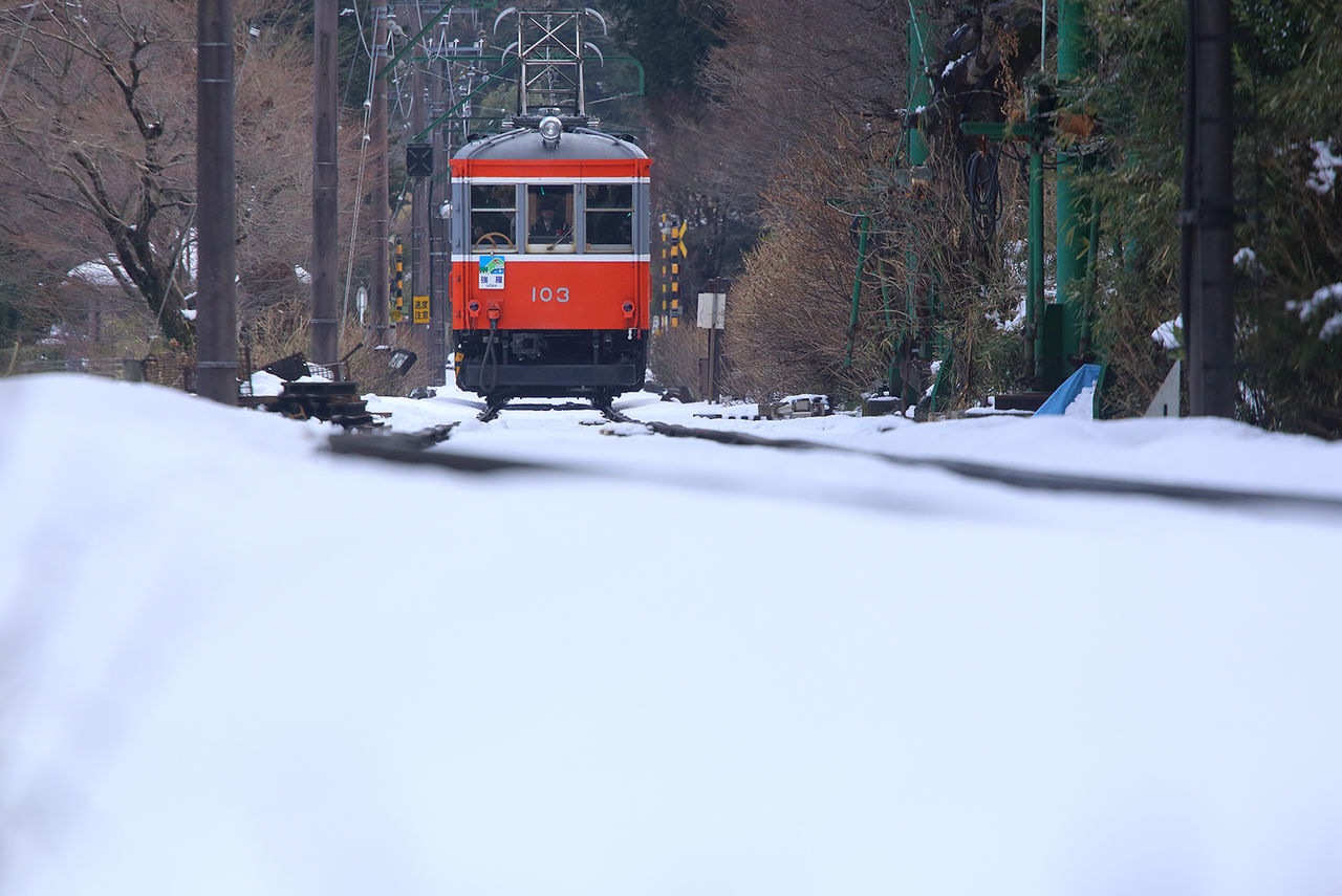珍しい、同時発車シーン。しかも雪景色。猪のおかげです。