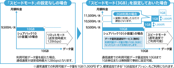 Wimax2+などでも、直近3日間で10GB以上などの条件を付けて短期間でたくさんのモバイルネットワーク使用を制限しています。通信制限がかかった後ドコモの回線などでは、契約通信量を超えた場合にはオプションのパケットを購入しなければその月の残りの日は通信速度が送受信時最大128kbpsと極端に落ちてしまいます。※翌月になればまた1からのカウントとなり速度制限はなくなります。ドコモHPよりイメージ図を添付します。