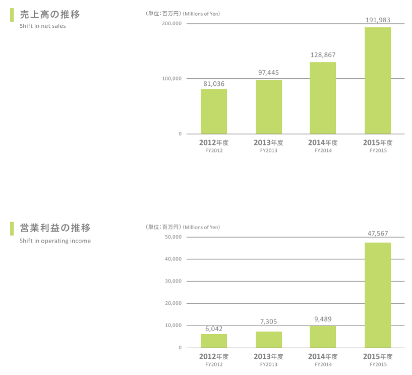 会社の業績は、UQモバイルを開始した2015年に飛躍的に伸びています。