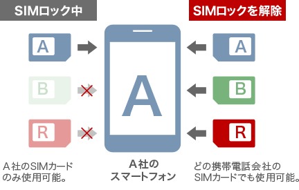 上記の方法で、他社のSIMロックを解除(APPLEストアで購入したiPhoneは元々ロックがかかっていません)してから使えるようになります。