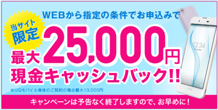 ・クレジットカードでお申込み・指定の端末をお申込み・Webフォームからお申込み2)Broad WiMAXを同時申込みすると更に+12,000円のキャッシュバック(13,000円+12,000円で最大25,000円)