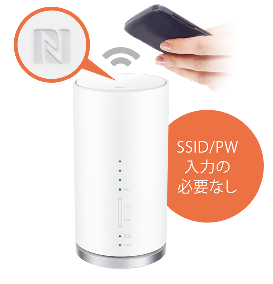 パソコンからは、無線LANの名前(SSID)を画面より選択し、パスワードを入れるだけで接続。スマホはかざすだけで自動的にwifiに接続されます。