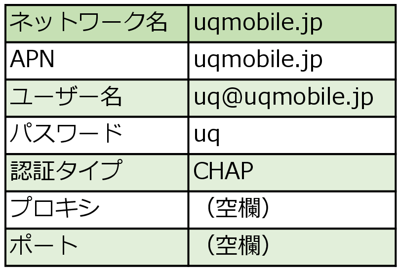 ※なお、UQモバイルで購入したAndroid端末は「APN設定済」なのでそのまま使えます。