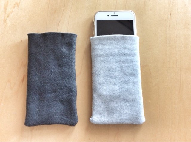 最後に、私が最近作った「スマホケース」を写メしました。フライングタイガーのフェルトのスマホケースがシンプルで気に入っていたのですが、買い替えをしようと店に行くと、もう販売されていないため、自分で作ることにしたのです。100円で5枚フェルトが入っていたので、20円で作れちゃいましたが! フライングタイガーのは、紫ピンクでしたので、今回はシックな色にしてみました。
