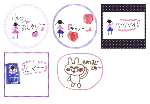 そのメインキャラクターになる予定のロバートスタンプが姪たちにも好評で、シールにして印刷してあげました。それから、ゆめちゃんがマネしてスタンプを即席で作っていました。