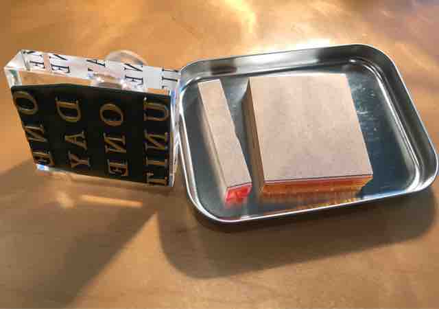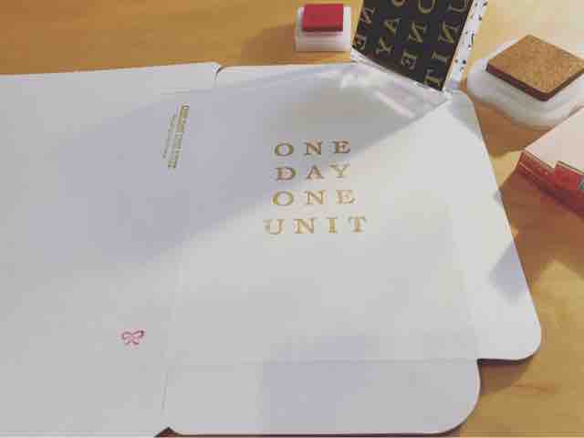 ONE DAY ONE UNIT kitは、A6サイズの箱に入っています。その表紙をどう作るか色々と可能性を考えてみて、一番シンプルかなと思ったのが、自分で印鑑を発注し、自分でスタンプするというものです。はんこ屋に発注することも初めてで、ネットで検索した広島の業者と、有名なアスクルで作りました。