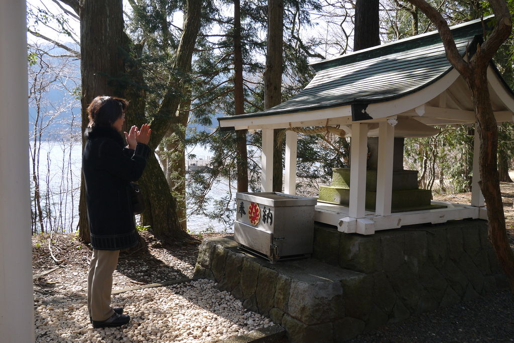 ◎13:20 九頭龍神社へ 4.5キロほど芦ノ湖畔を歩く。