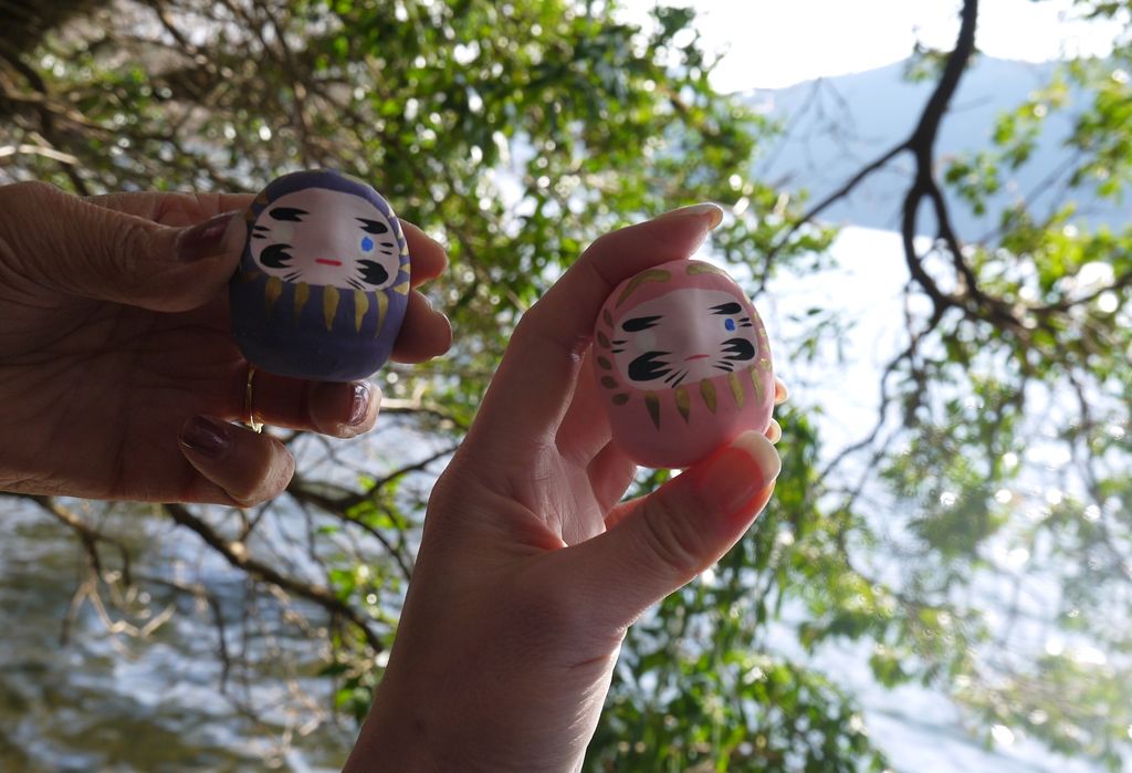 毎年違っただるまにしているので、紫→緑→黄色ときて、今年は残り物のピンクにせざるを得ませんでした。(笑)とくに、昨年の「黄色」のおかげで、ビジネスアイデアの創造性が開花してしまったので、このだるまは、相当パワーを持っているはずです。きっと、九頭龍神社で開眼し、芦ノ湖の水で絵の具を溶いているからです!