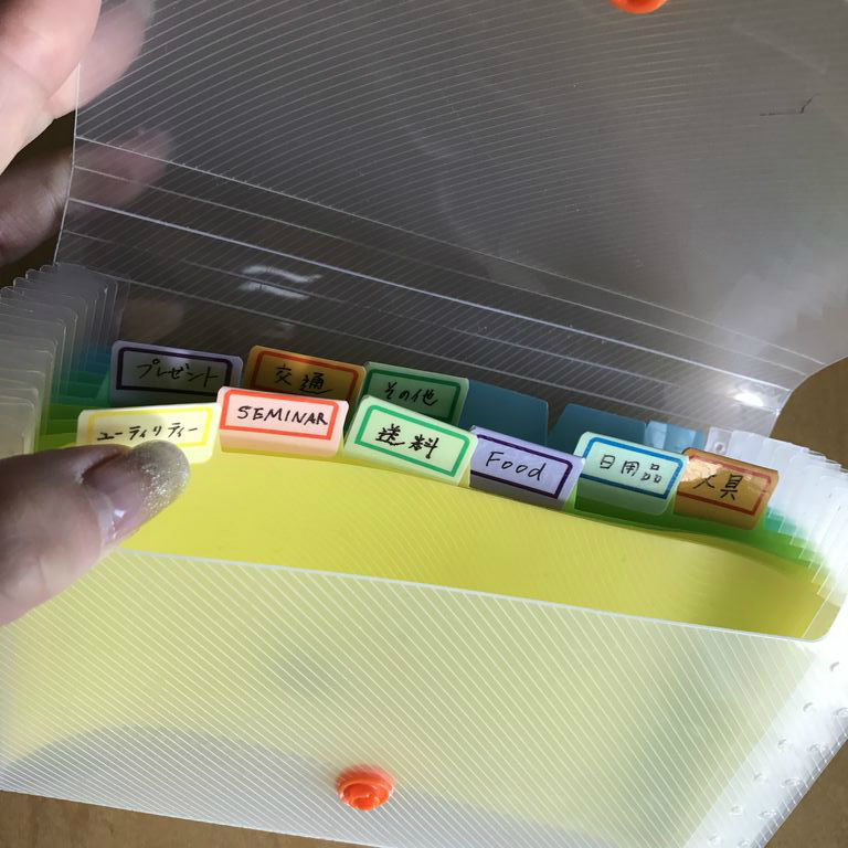 また、レシートを分ける手間をかけさせないように、このような仕訳ボックスを使用しています。ここにレシートを入れて、毎月郵送しているのです。私の集計はあっという間に終わらせることができるようです。