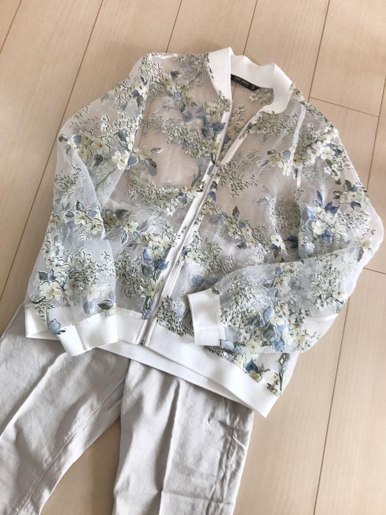 ★花柄JK (ZARA)+細身のアンクル丈パンツ(DOMINGO)